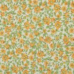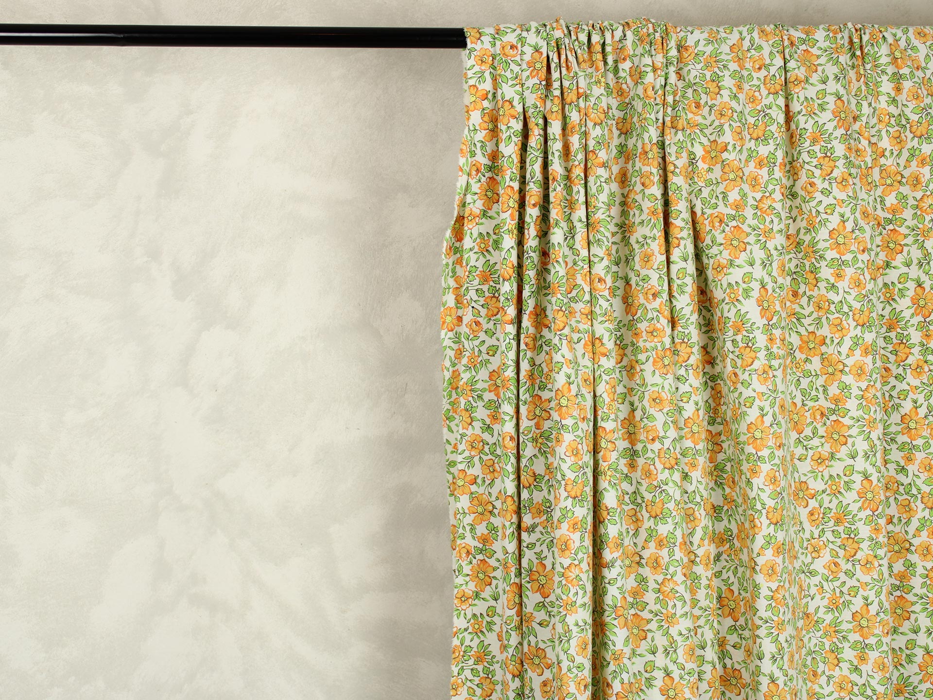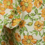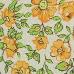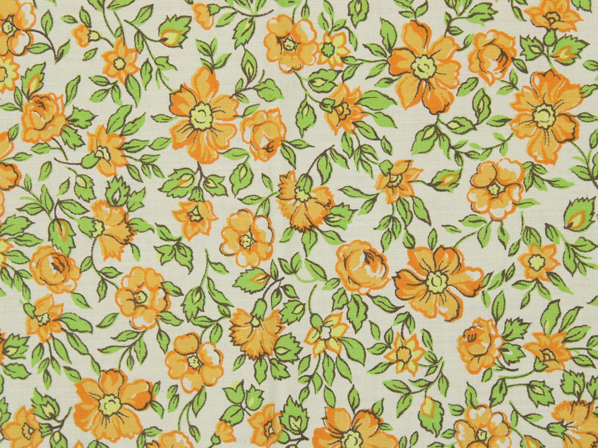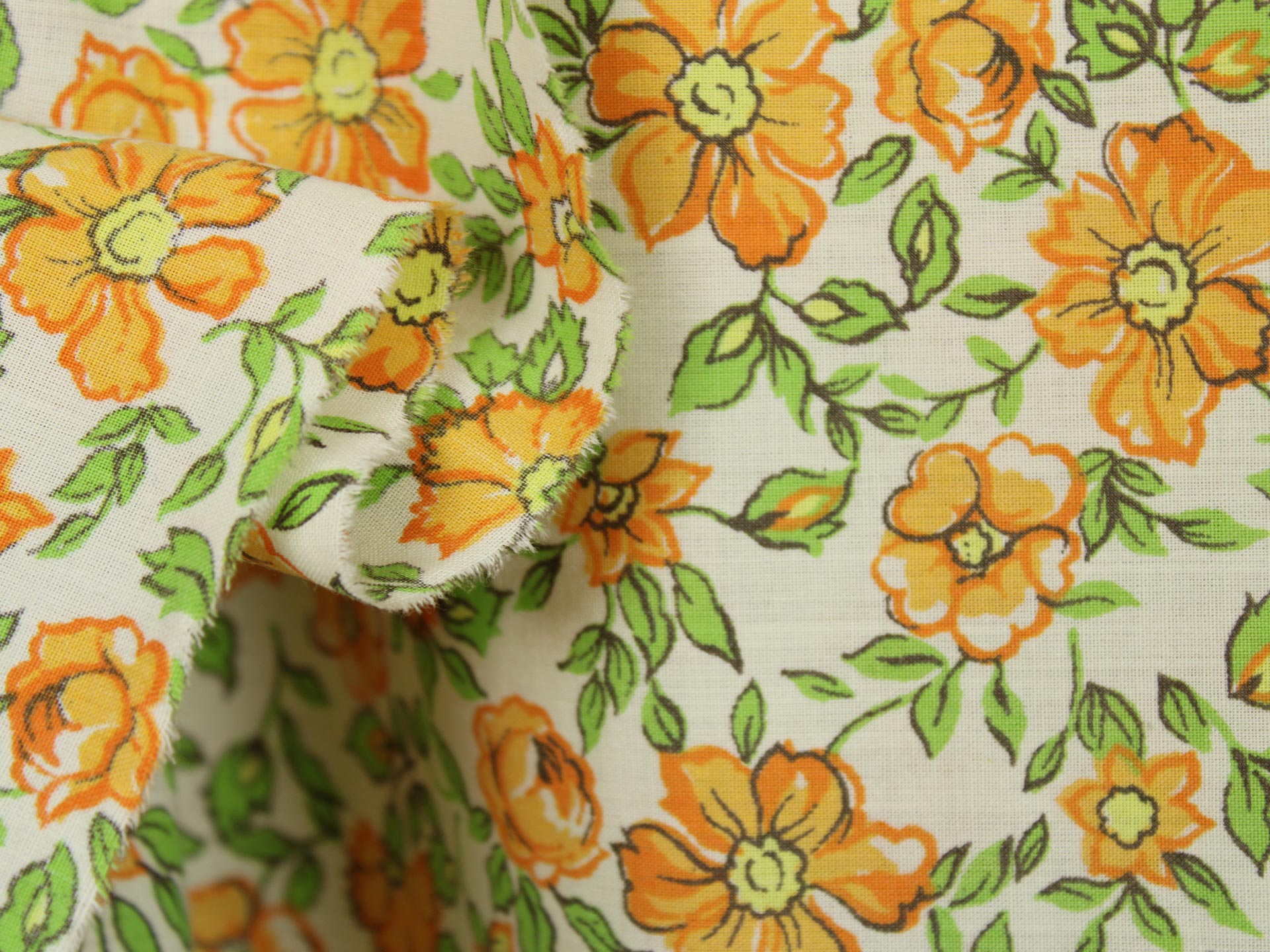満開に咲いたオレンジの花々と緑の葉。明るく華やかな色合いで、手描きタッチが素朴な印象もあるデザインです。