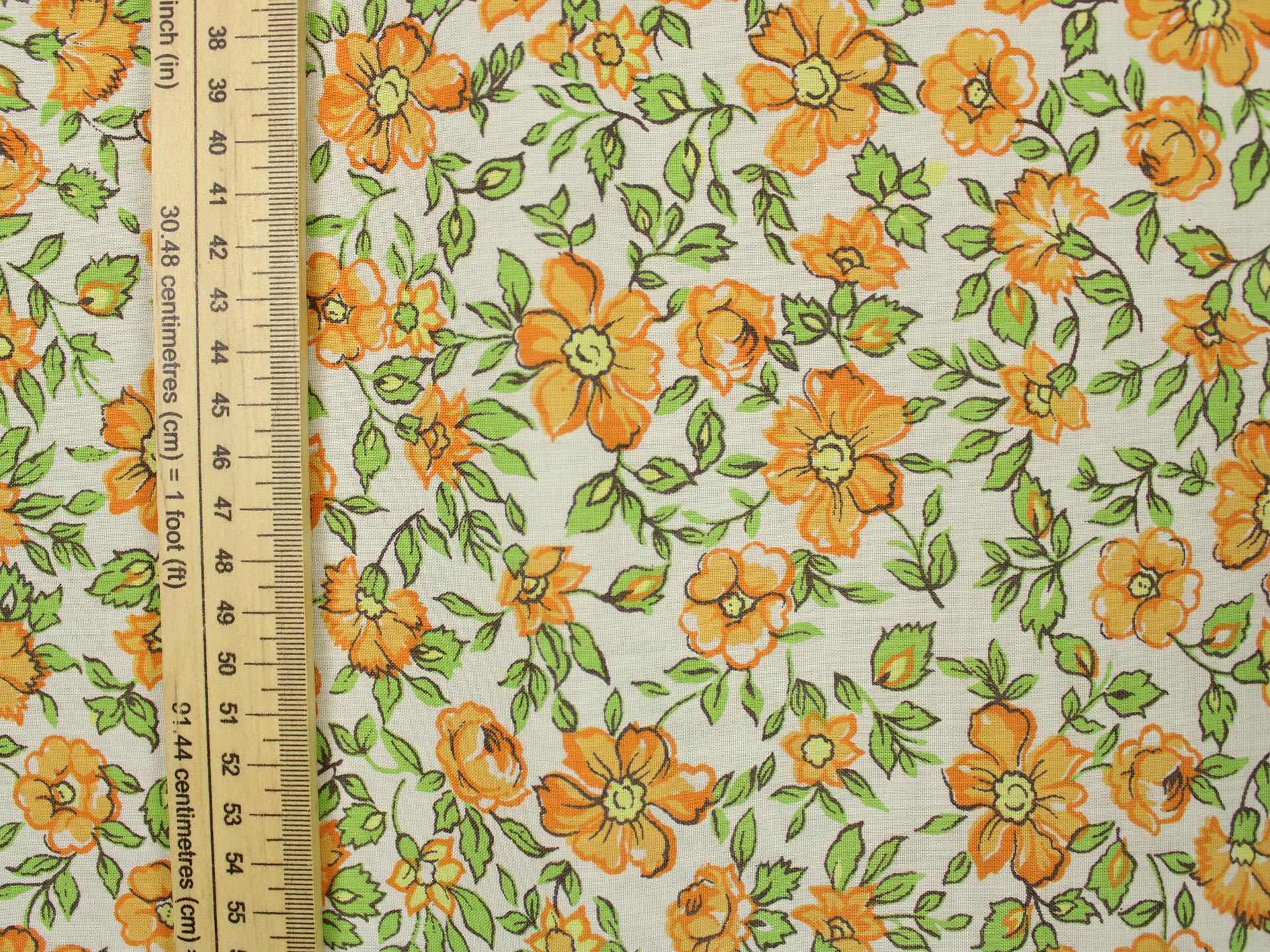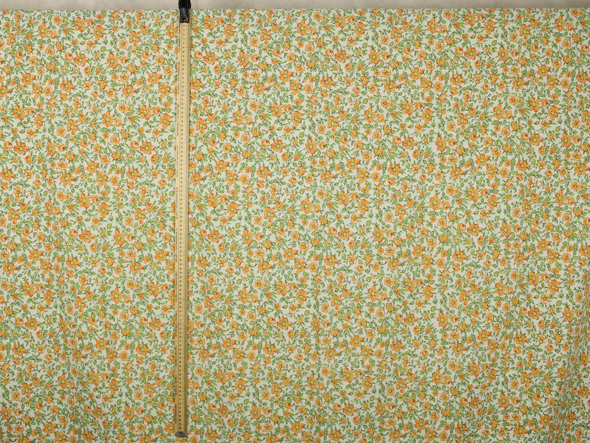 中古シーツを解体したものです。化繊混紡のサラッとした手触り。薄手〜普通程度の透け感のある生地です。柄サイズ、生地感については画像をご参照下さい。1m定規をあてています。
