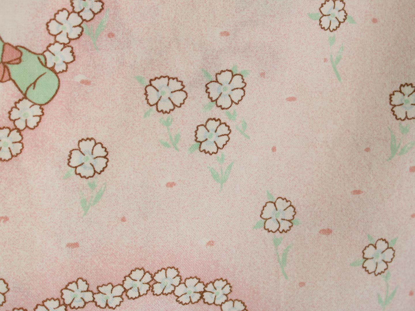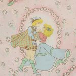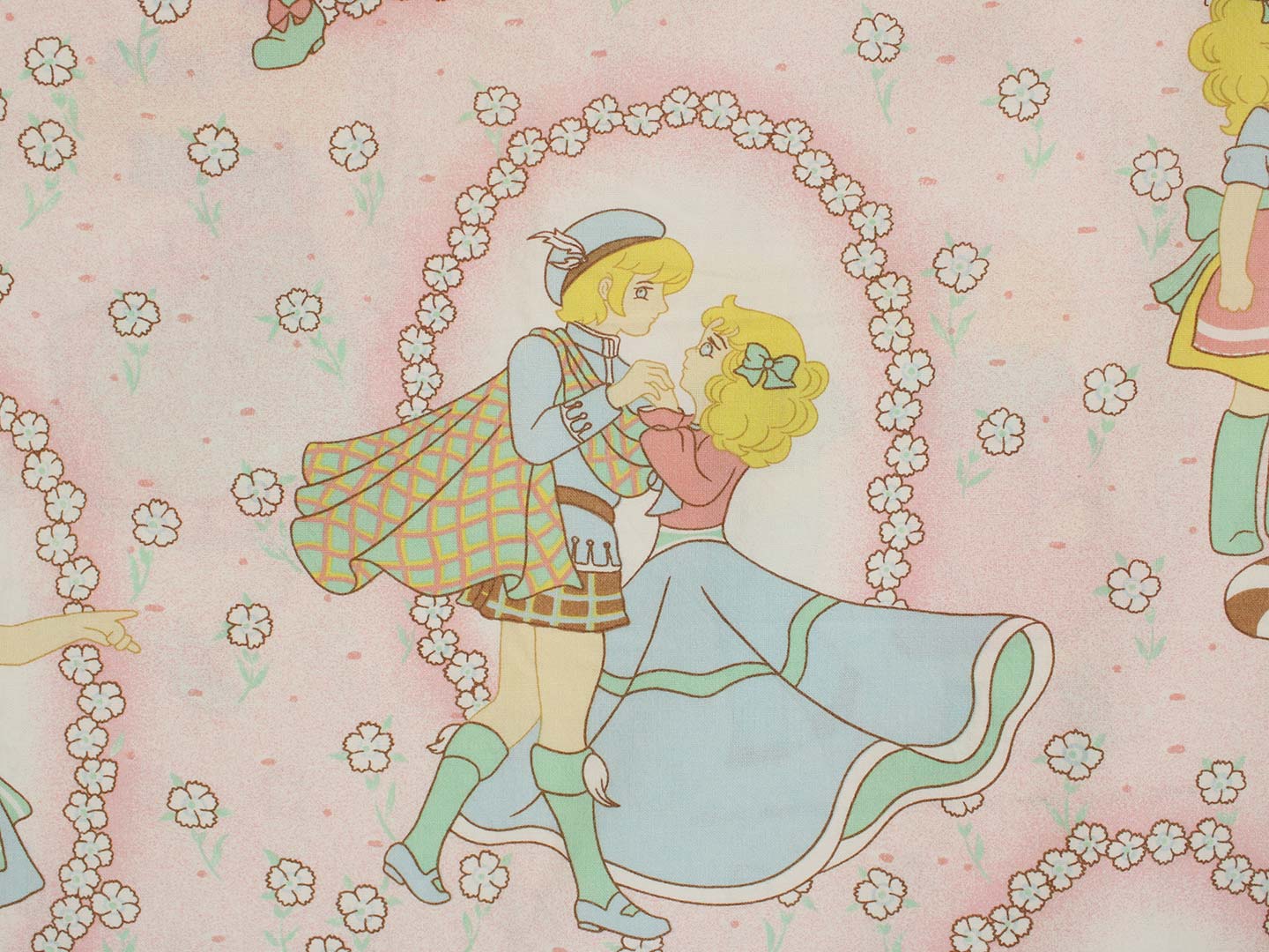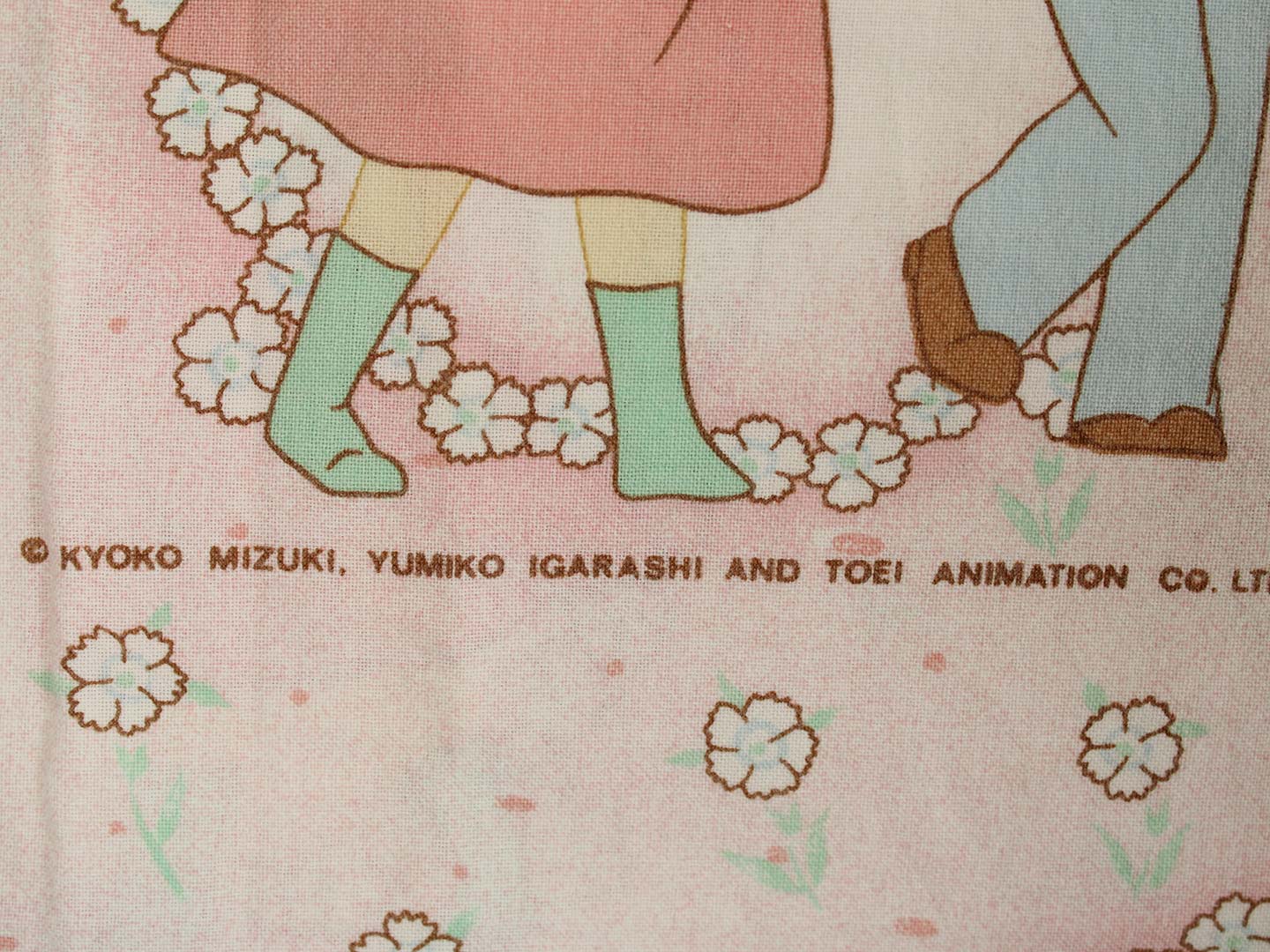 アニメ版キャンディ・キャンディ。ピンク地に小花柄のお布団カバーです。少女時代のキャンディやアニー、丘の上の王子さまが描かれたガーリーなデザインです。お布団カバーは両面同じ絵柄です。やや目の粗い柔らかなコットン製です。