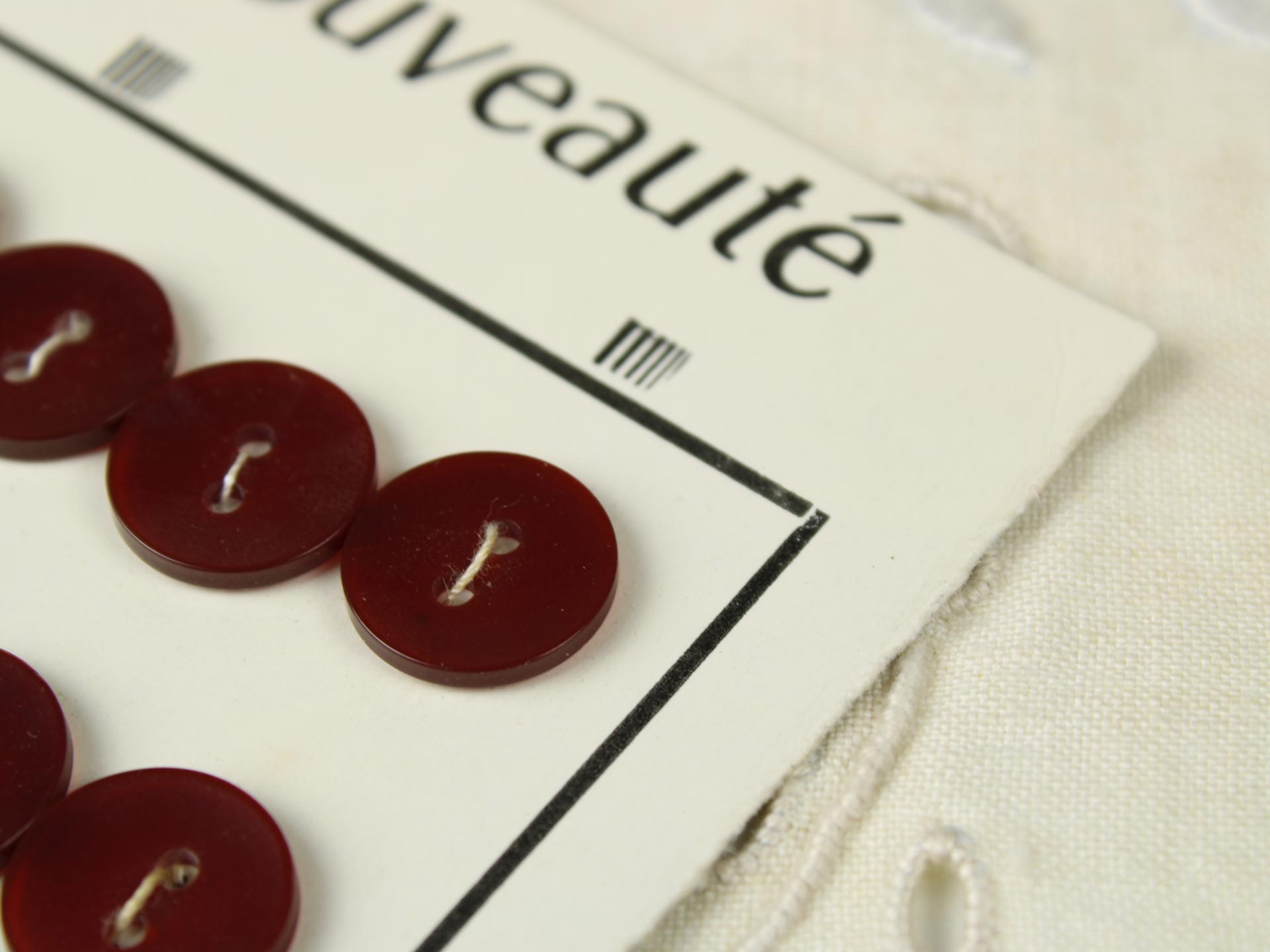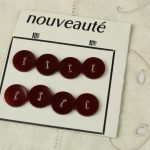 ヴィンテージボタン8個付きのボタンシートです。メタリックな光沢のあるダークレッドの樹脂ボタン。