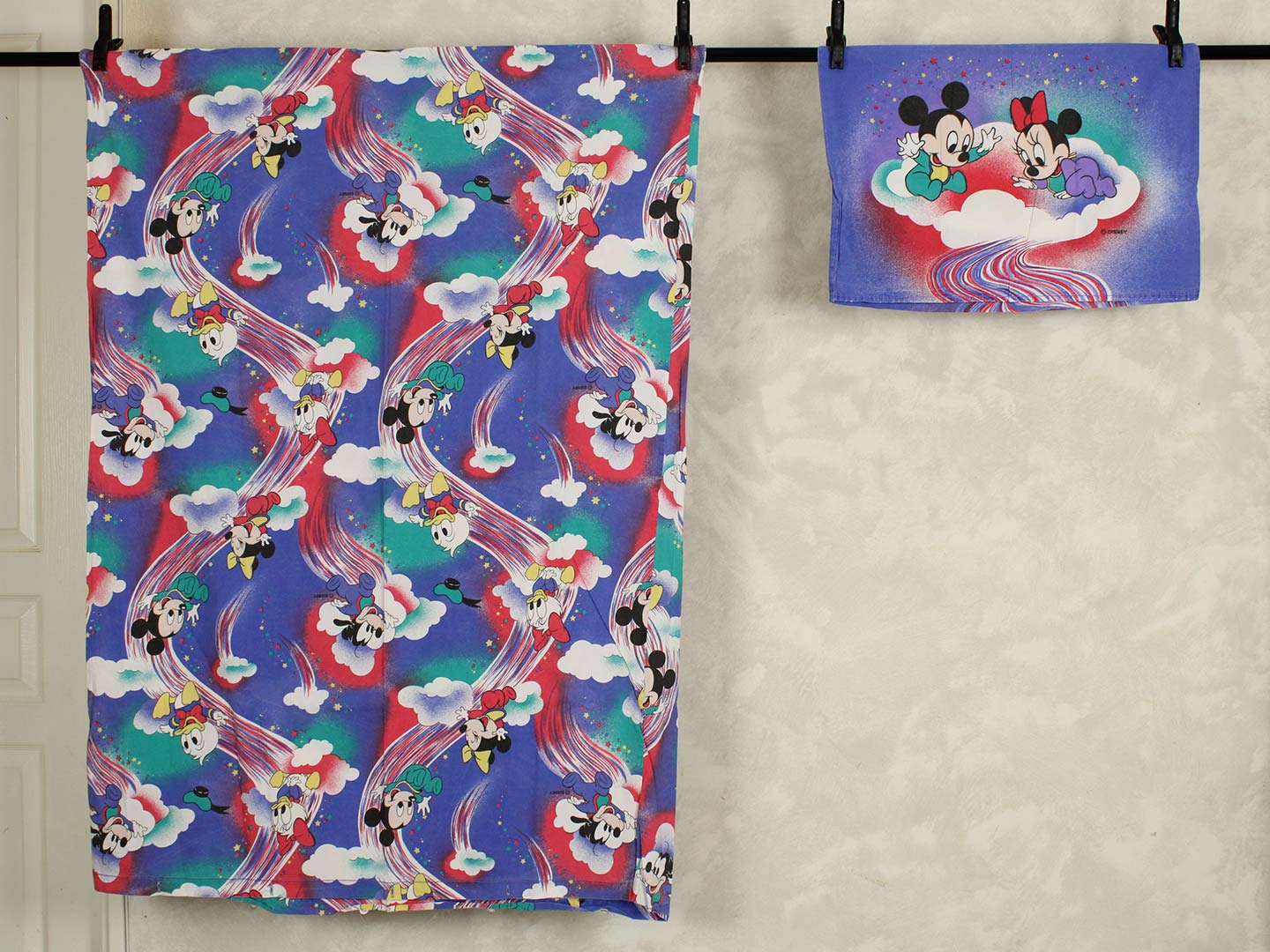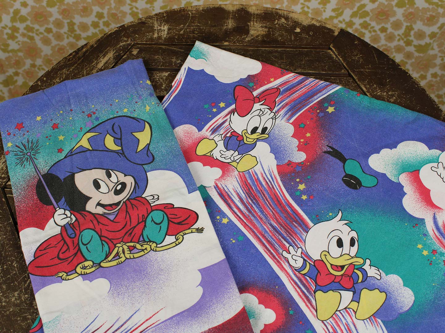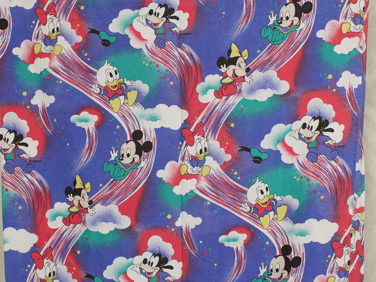 ディズニー、ミッキーと仲間たち、キャラクタービンテージシーツ。80年代、ドイツ。