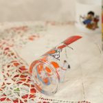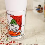 ポンゴとパーディタ、子犬たちが描かれたグラス。マスタードグラスと呼ばれる、元々はマスタードが入って売られていたノベルティ品です。小ぶりで可愛らしいグラスです。