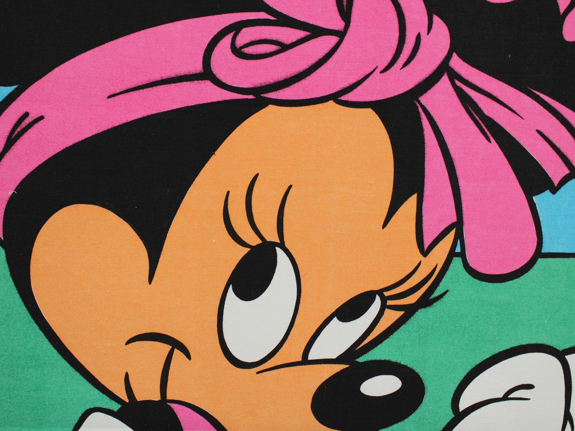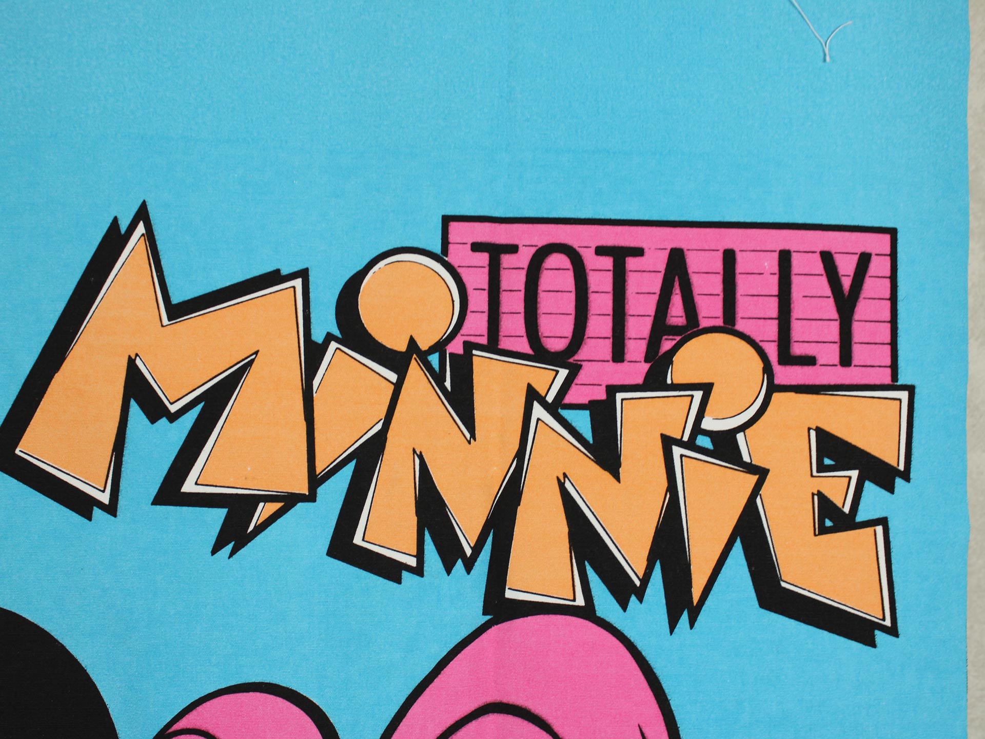 トータリーミニーの特大タペストリー。80年代のディズニーテレビ映画、トータリー・ミニー。いわゆる特番のため、トータリー・ミニーのグッズは希少です。未使用品。インクの滲みといった製造むらはありますが、とても良い状態です。
