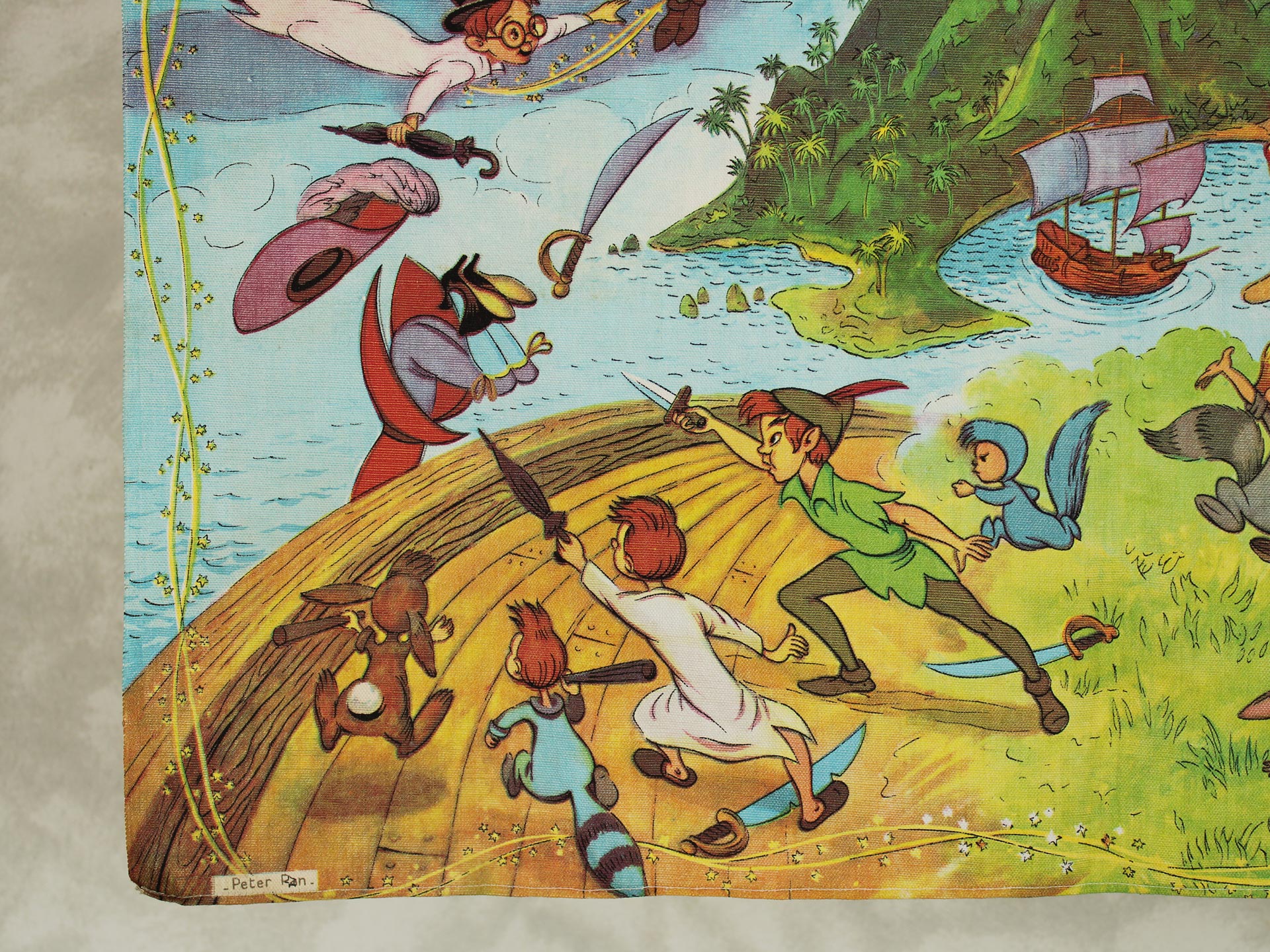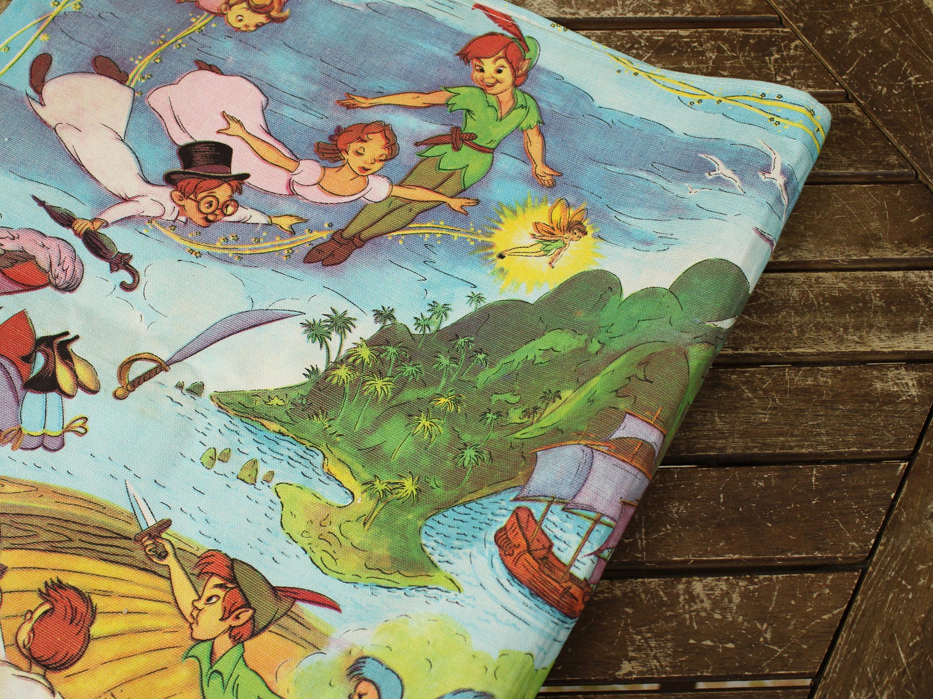 WALT DISNEY PRODUCTION、ピーターパンの絵柄がプリントされたキッチンクロスです。60年代、フランス。