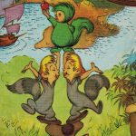 空と海とネバーランド、楽しげなピーターパンと子供たち。ちらりとフック船長も見えます。ピーターパンの世界がぎゅっと詰まった、美しい絵画のようなデザインです。
