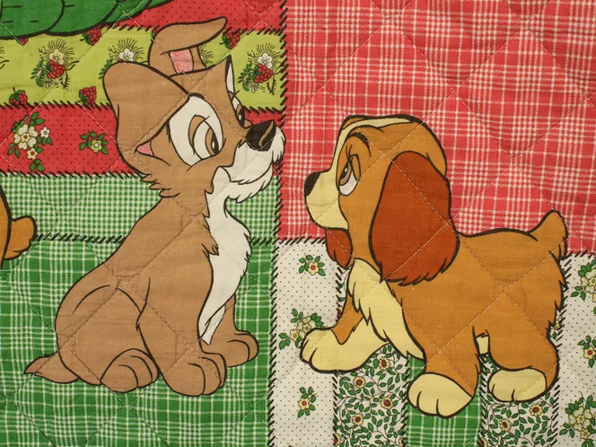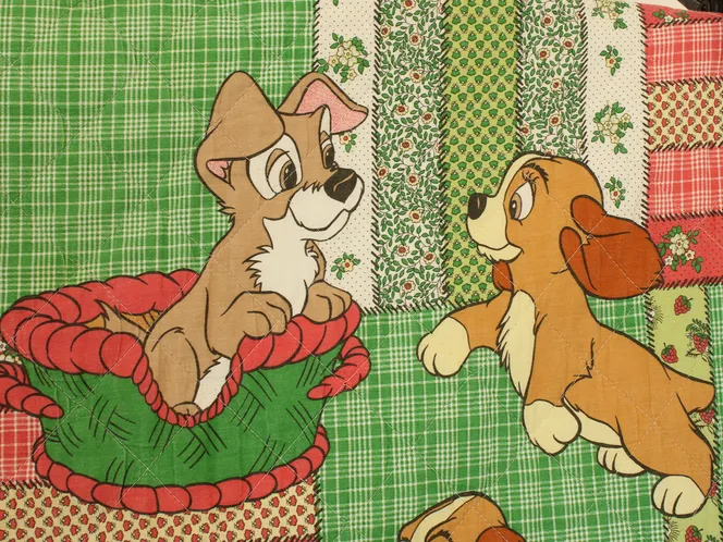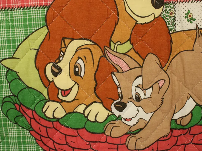 ディズニー、わんわん物語、ヴィンテージベッドカバー。