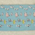 水色地小柄のわんちゃん達の、ベビーサイズお布団カバーです。お布団カバーは両面同じ絵柄です。しっかりとした、やや厚手のコットン地で仕立てられており、薄手のデニムのような風合いです。