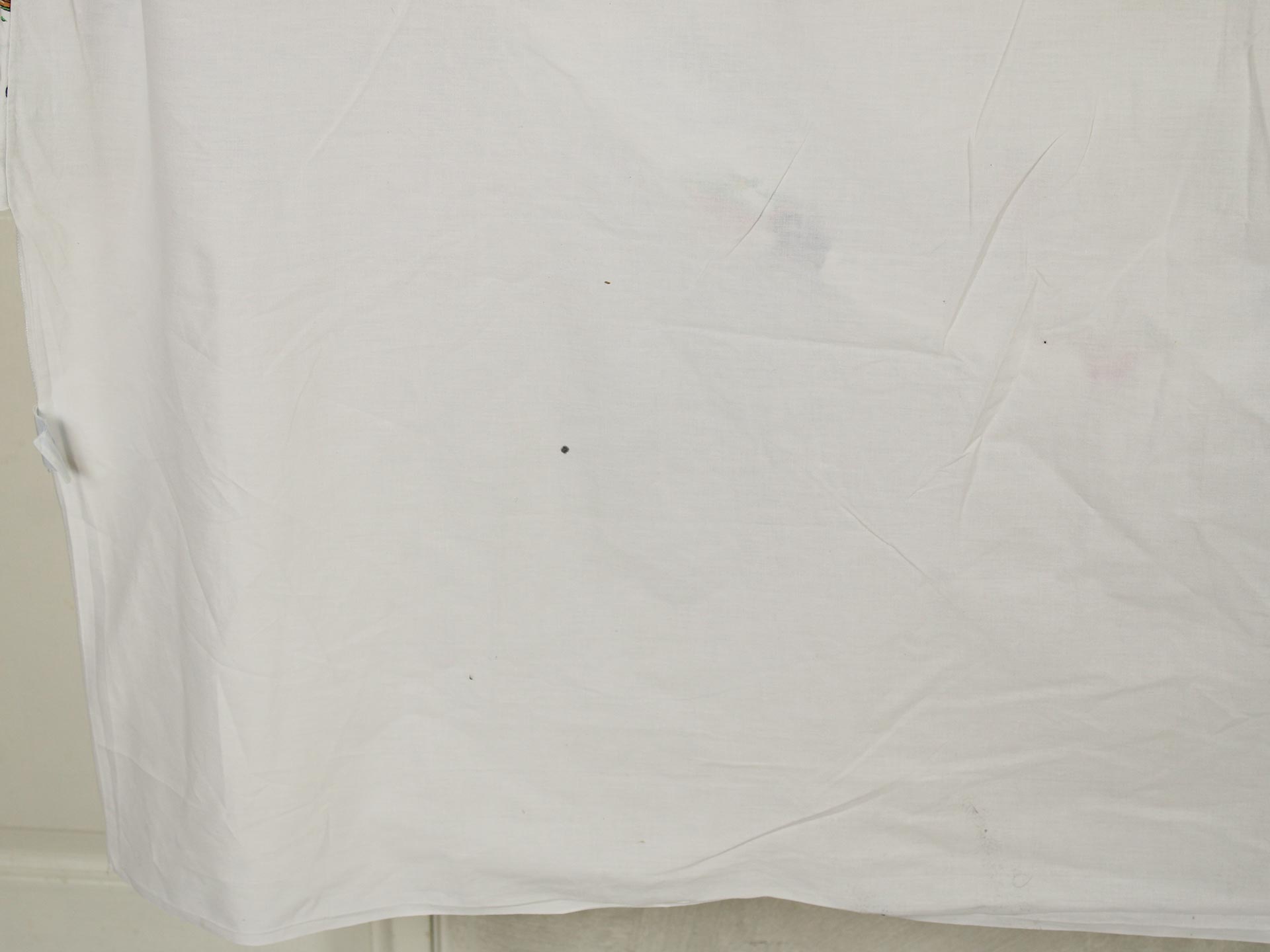 中古品。全体的な色落ち、生地表面の擦れがあります。特に布団カバーの大柄面はプリントが薄くなっています。数カ所に小さな染み汚れがあります。生地には毛羽立ち、毛玉はありません。