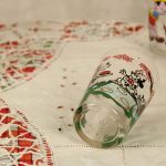 手描きタッチのミッキー&ミニー、グーフィーのピクニック柄ヴィンテージグラスです。ユーズド品。やや小ぶりのもので飾り用にも可愛らしいかと思います。