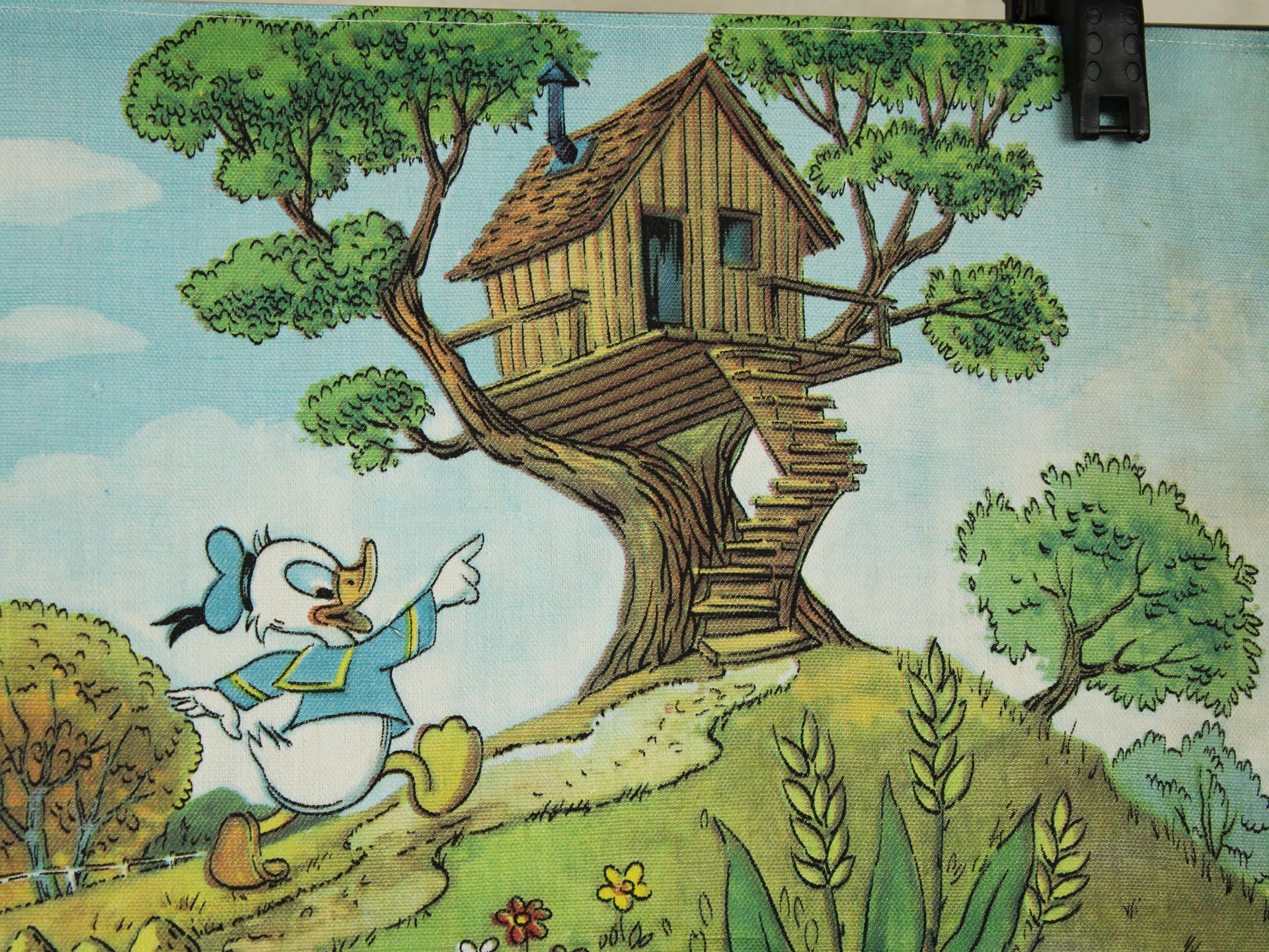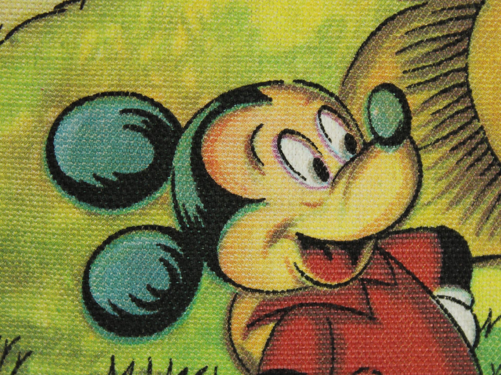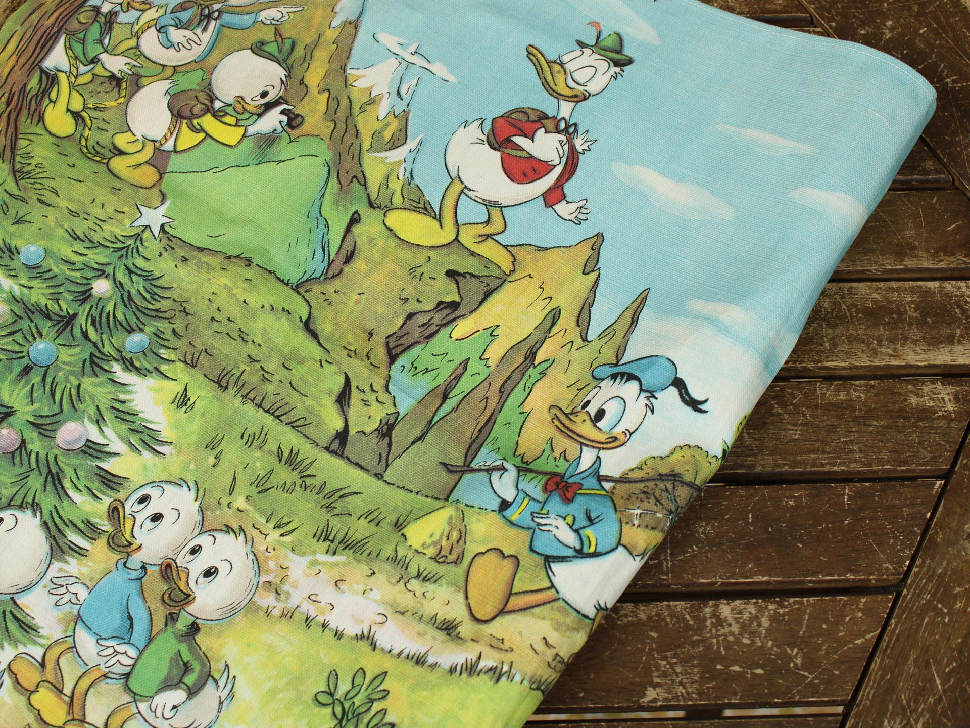 WALT DISNEY PRODUCTION、ミッキーと仲間たちがプリントされたキッチンクロスです。60年代、フランス。