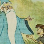 WALT DISNEY PRODUCTION、王様の剣の絵柄がプリントされたキッチンクロスです。60年代、フランス。