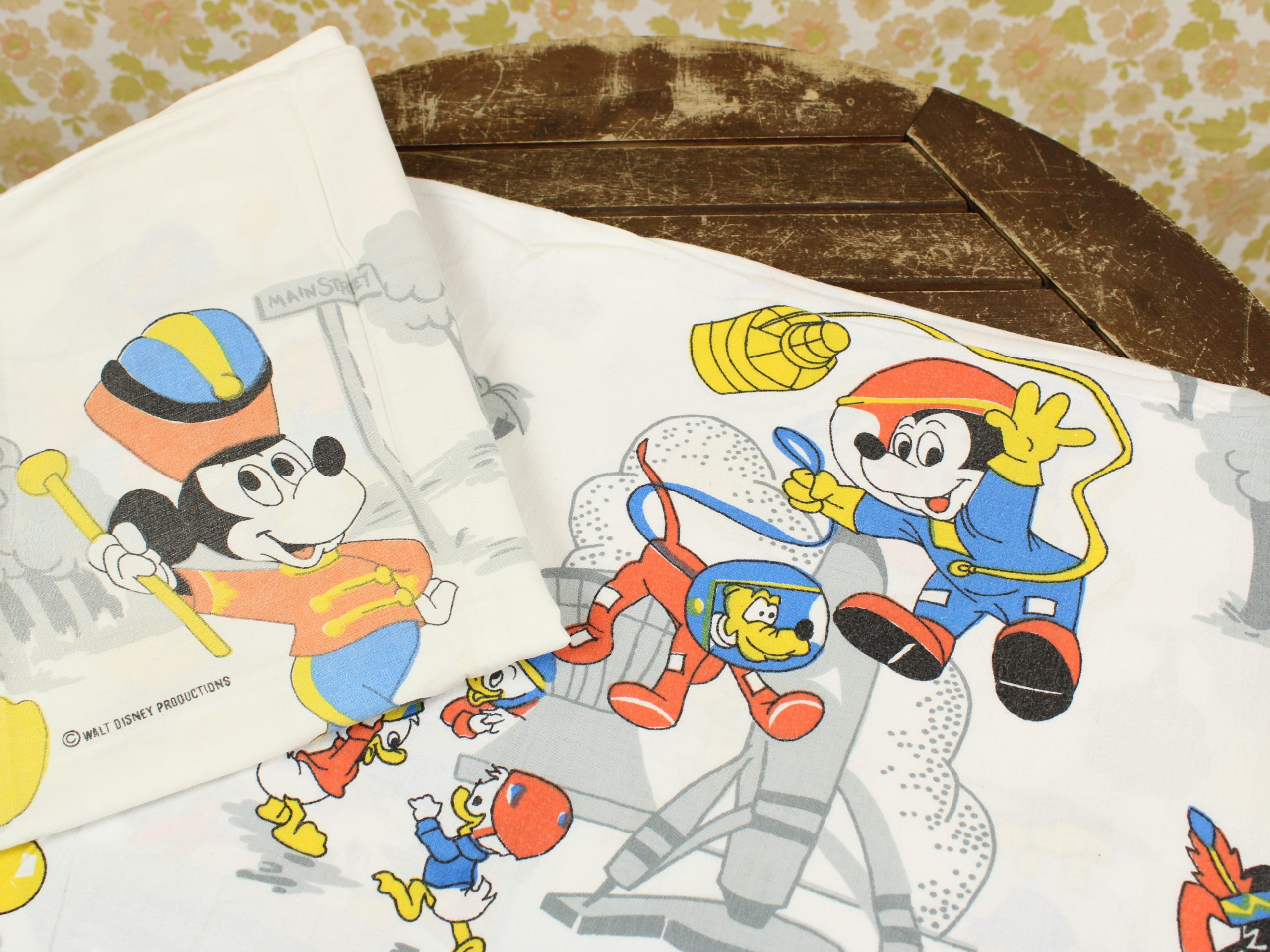 WALT DISNEY PRODUCTIONS、ミッキーと仲間たち、キャラクタービンテージシーツ。70~80年代。