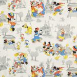 ミッキー、ミニーとドナルドや仲間たち。人気の白地、ディズニーランド柄のお布団カバー&ピローカバーのベッドセットです。影がグレーのバージョン。色々な衣装のキャラクターたちが可愛らしいです。お布団カバーは両面が同じ絵柄です。しっかりとしたコットン地です。