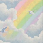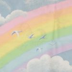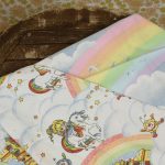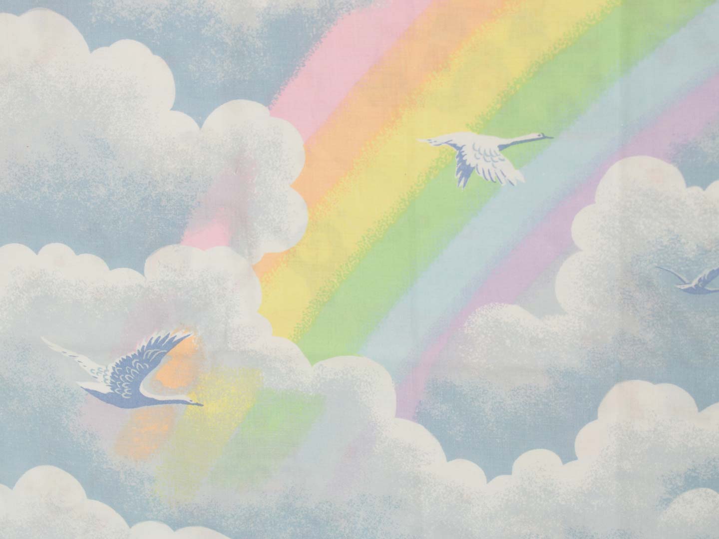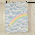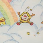 元祖レンボーブライトのレトロな絵柄が可愛い、ベビーサイズのお布団カバーです。裏面は虹と雲が絵柄です。