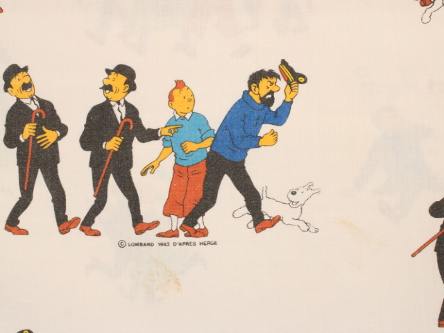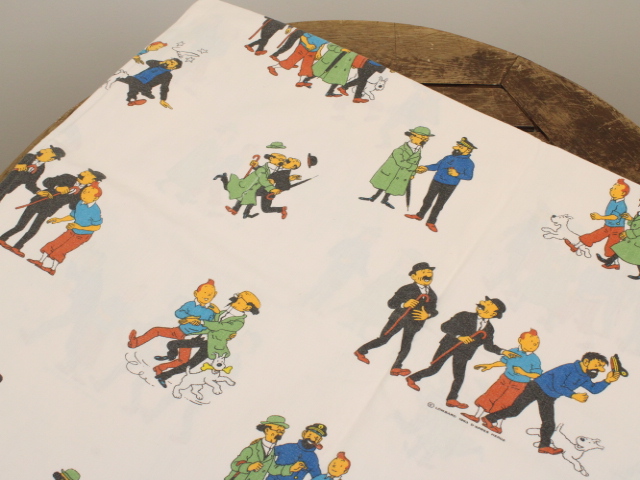 タンタンの冒険、キャラクタービンテージシーツ。80年代、フランス。