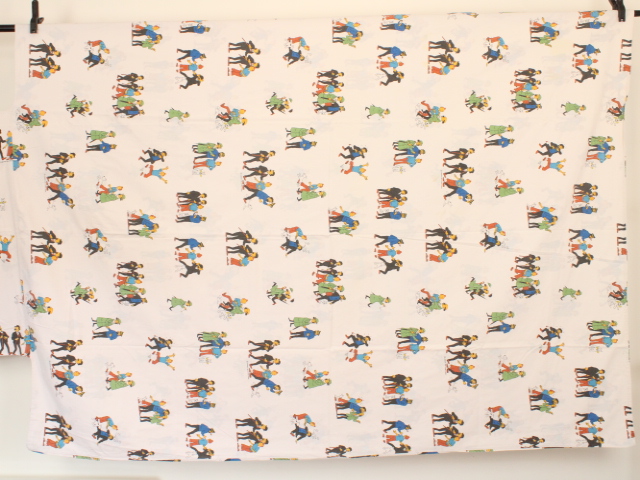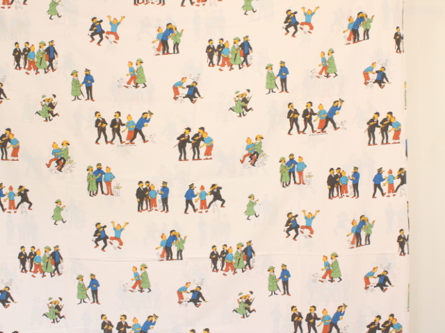 ベルギー発世界的人気コミック、タンタンの冒険シリーズ。各エピソードのデザインされたシーツもありますが、こちらのシーツはいずれのエピソードにも特化していないベーシックなデザインです。全面に小さなキャラクターの描かれたお布団カバーです。両面同柄。