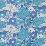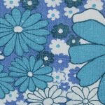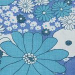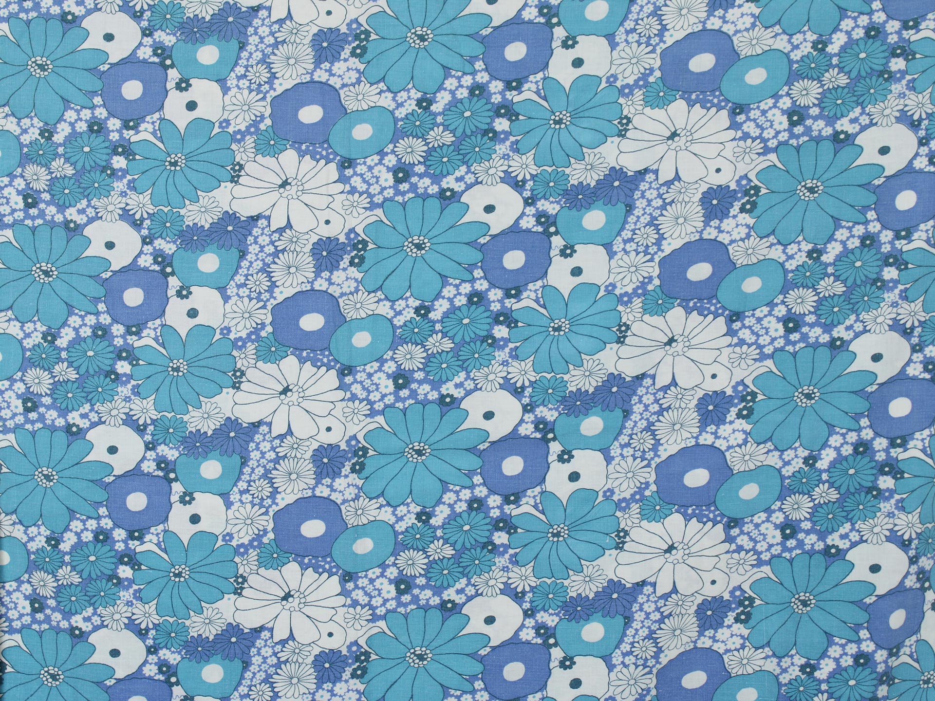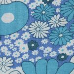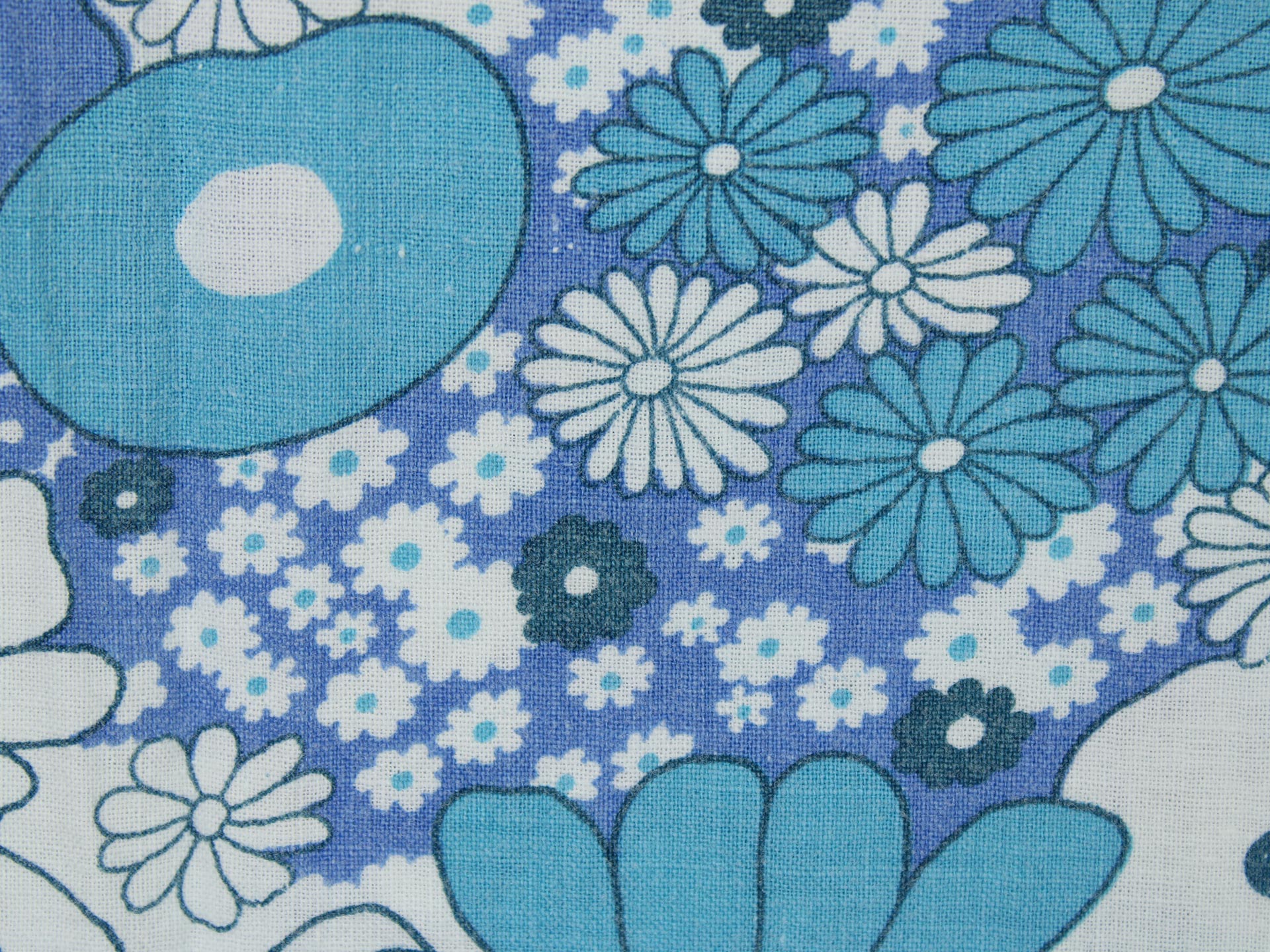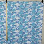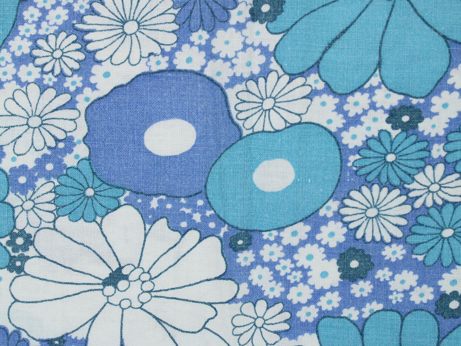 大小さまざまな花モチーフと、青のグラデーションの奥行きのあるデザイン。全体的な色落ちとかすれがヴィンテージ感をひきたてています。