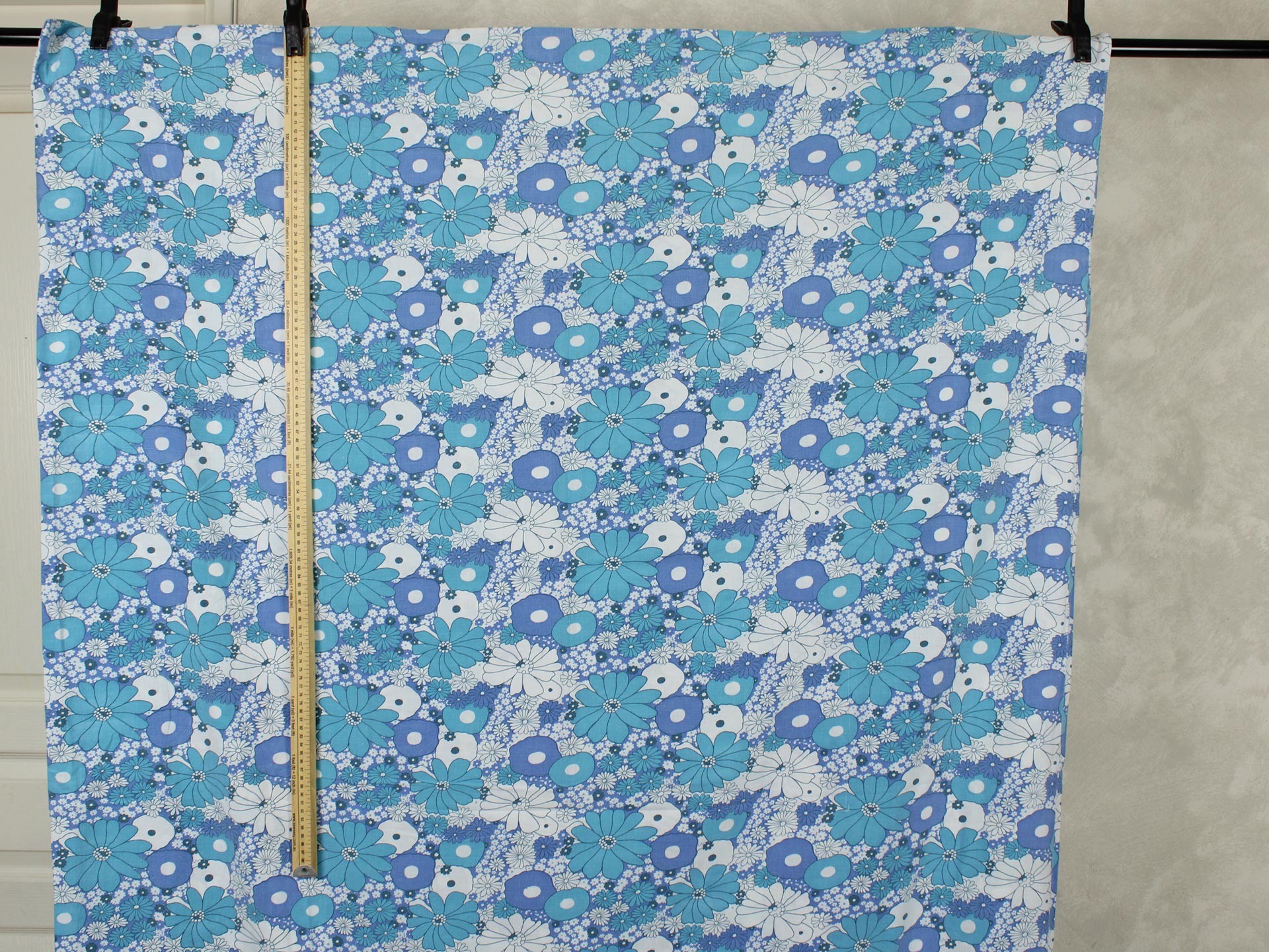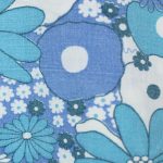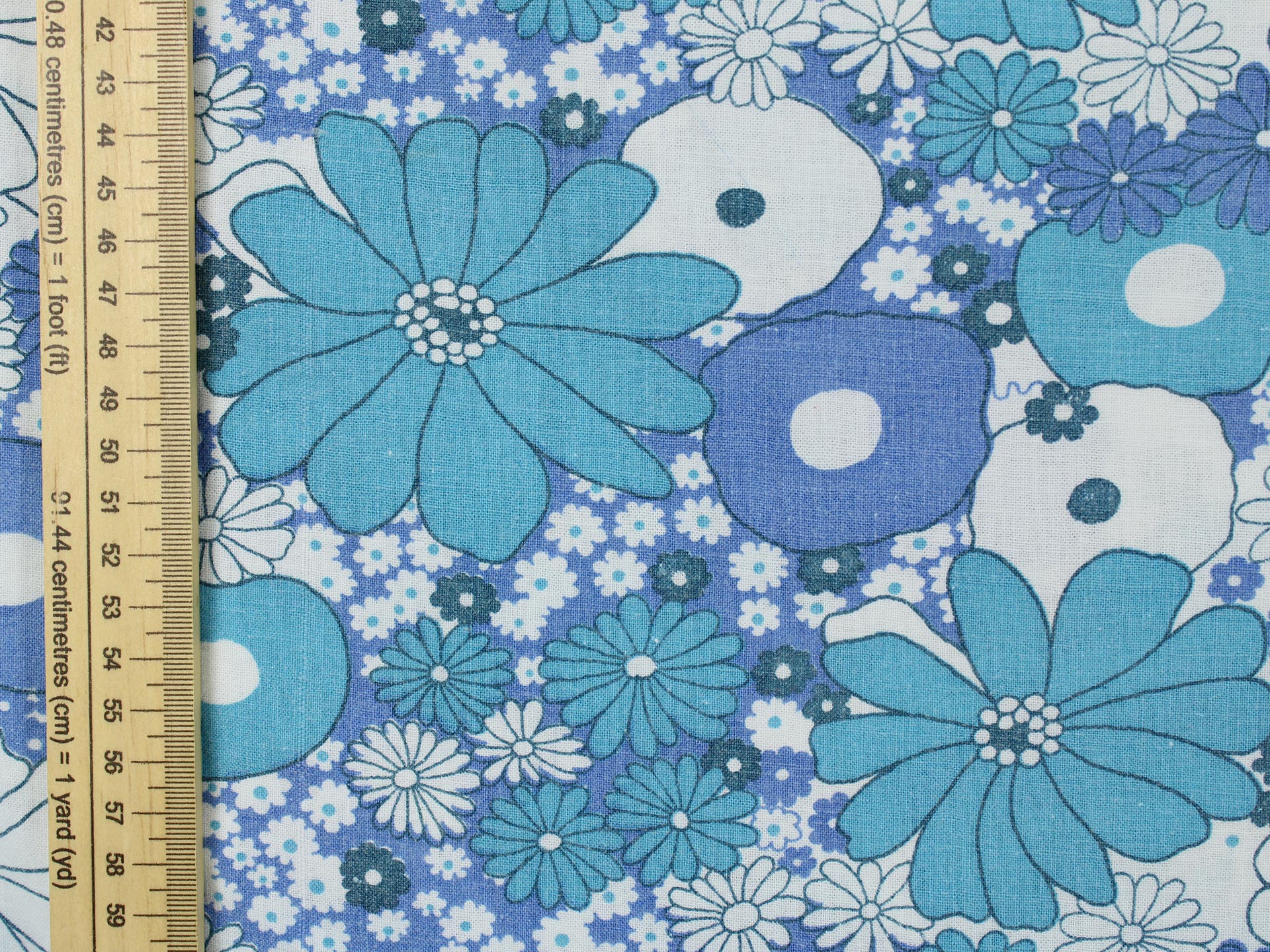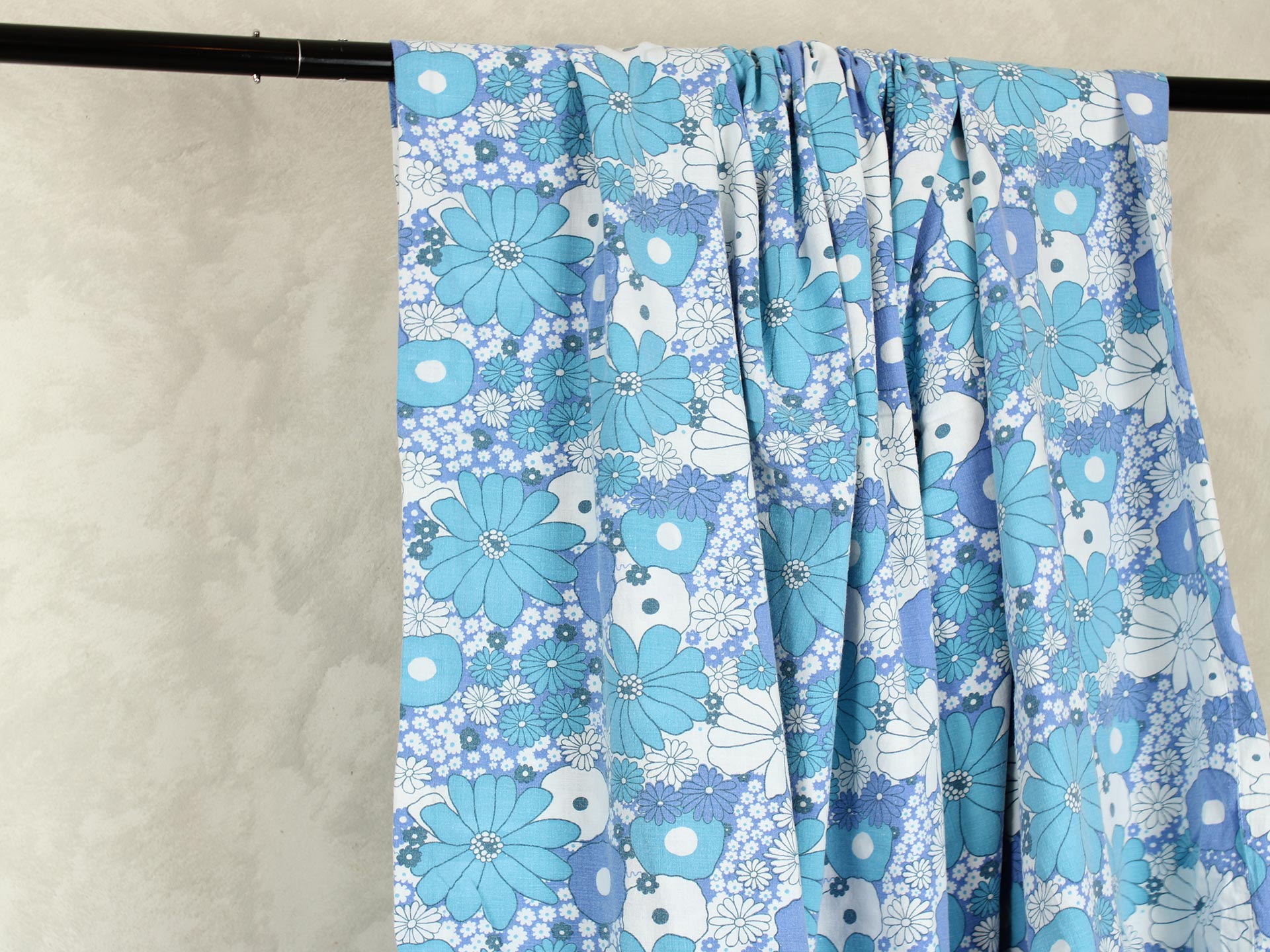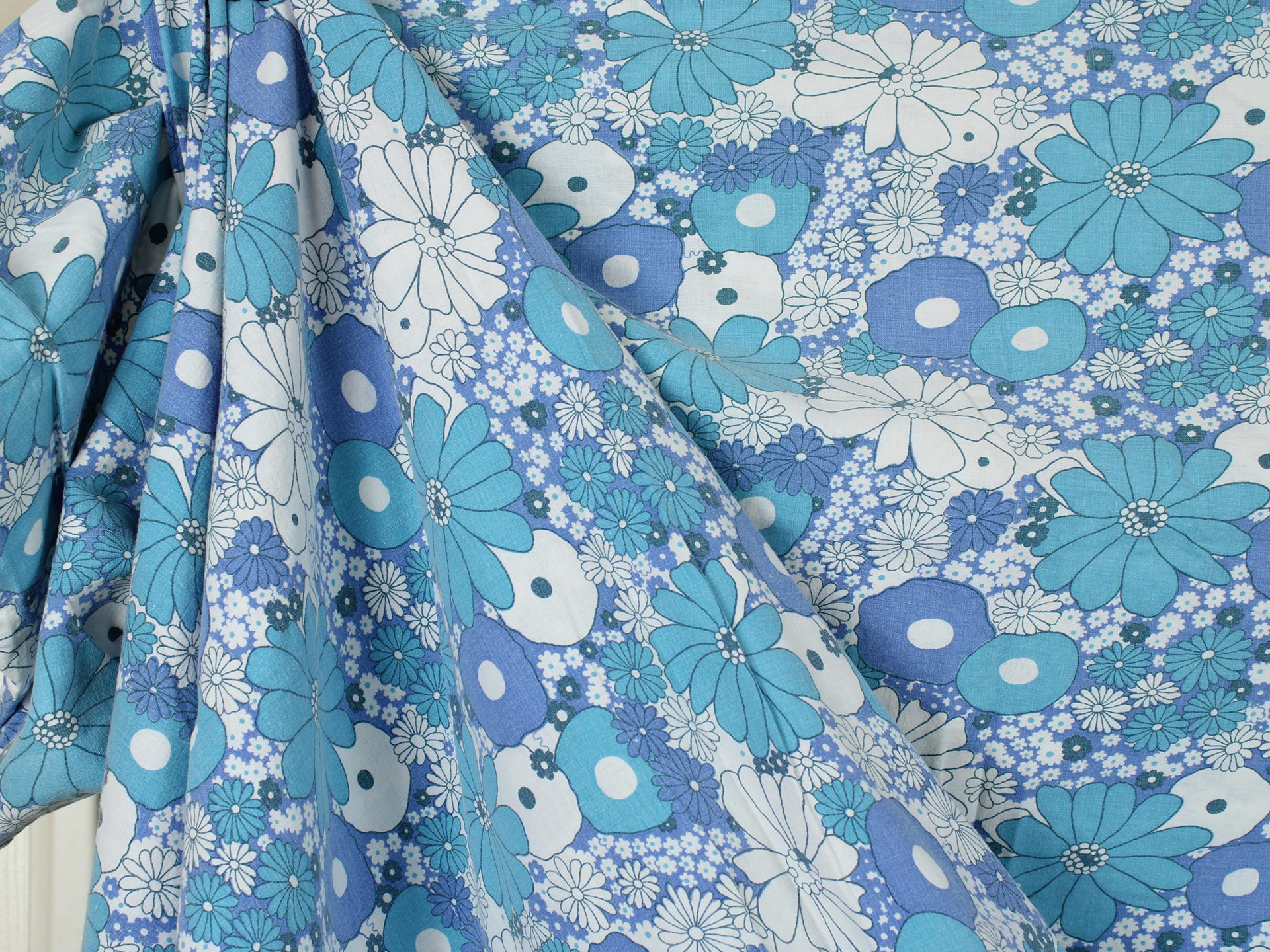 大小さまざまな花モチーフと、青のグラデーションの奥行きのあるデザイン。全体的な色落ちとかすれがヴィンテージ感をひきたてています。