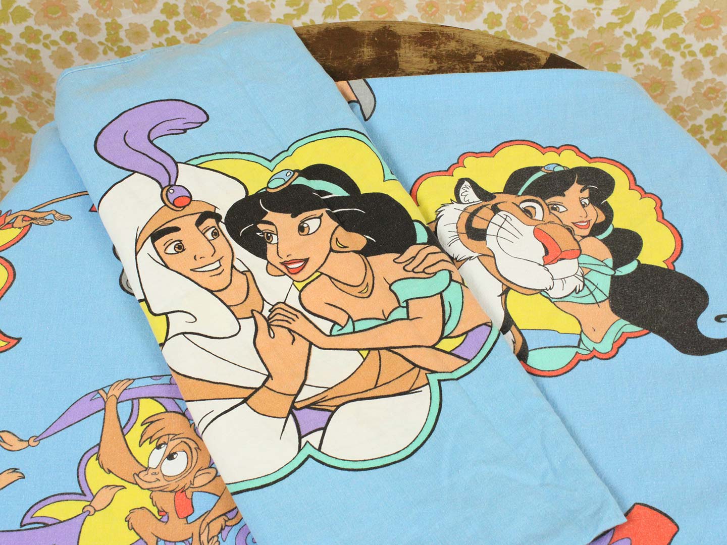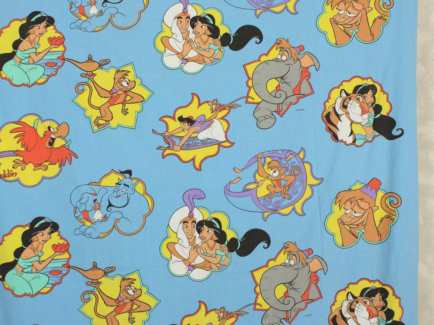 ディズニー、アラジン、キャラクタービンテージシーツ。90年代。