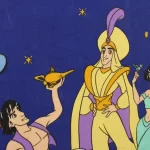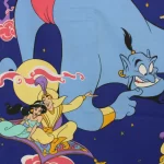 ディズニー、アラジン、キャラクタービンテージシーツ。フランス、90年代。