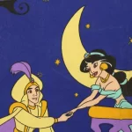 アラジン&ジャスミン、ジーニー、アブーの描かれた夜空柄のお布団カバーです。