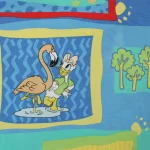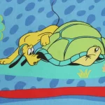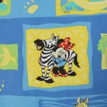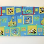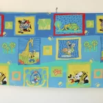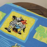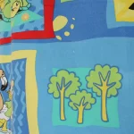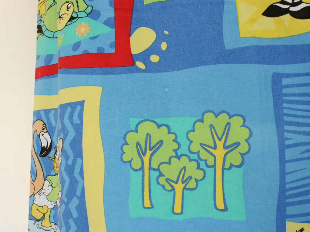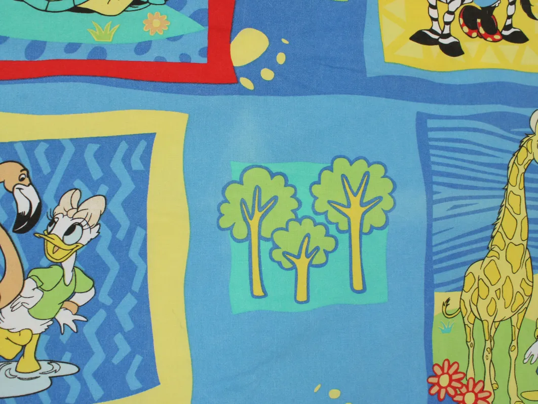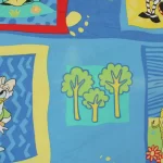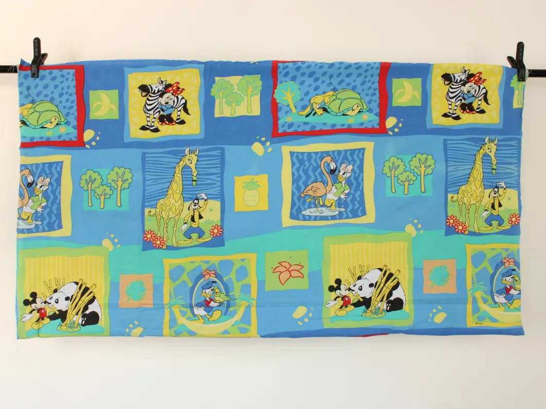 ミッキー、ミニー、ドナルド、デイジー、グーフィーたちの青地のサファリ柄。中古シーツの解体生地です。