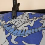 おしゃれキャット、スキャットキャットたちと子猫たちのお布団カバーです。片面は大きめのストライプ模様、もう片面は小さな絵柄のリバーシブルタイプです。
