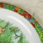 中古品。写真に写らない無数の細かな傷があります。プリントの剥がれがあります。大きな平皿の裏面に欠けがあります(表からは見えません)。