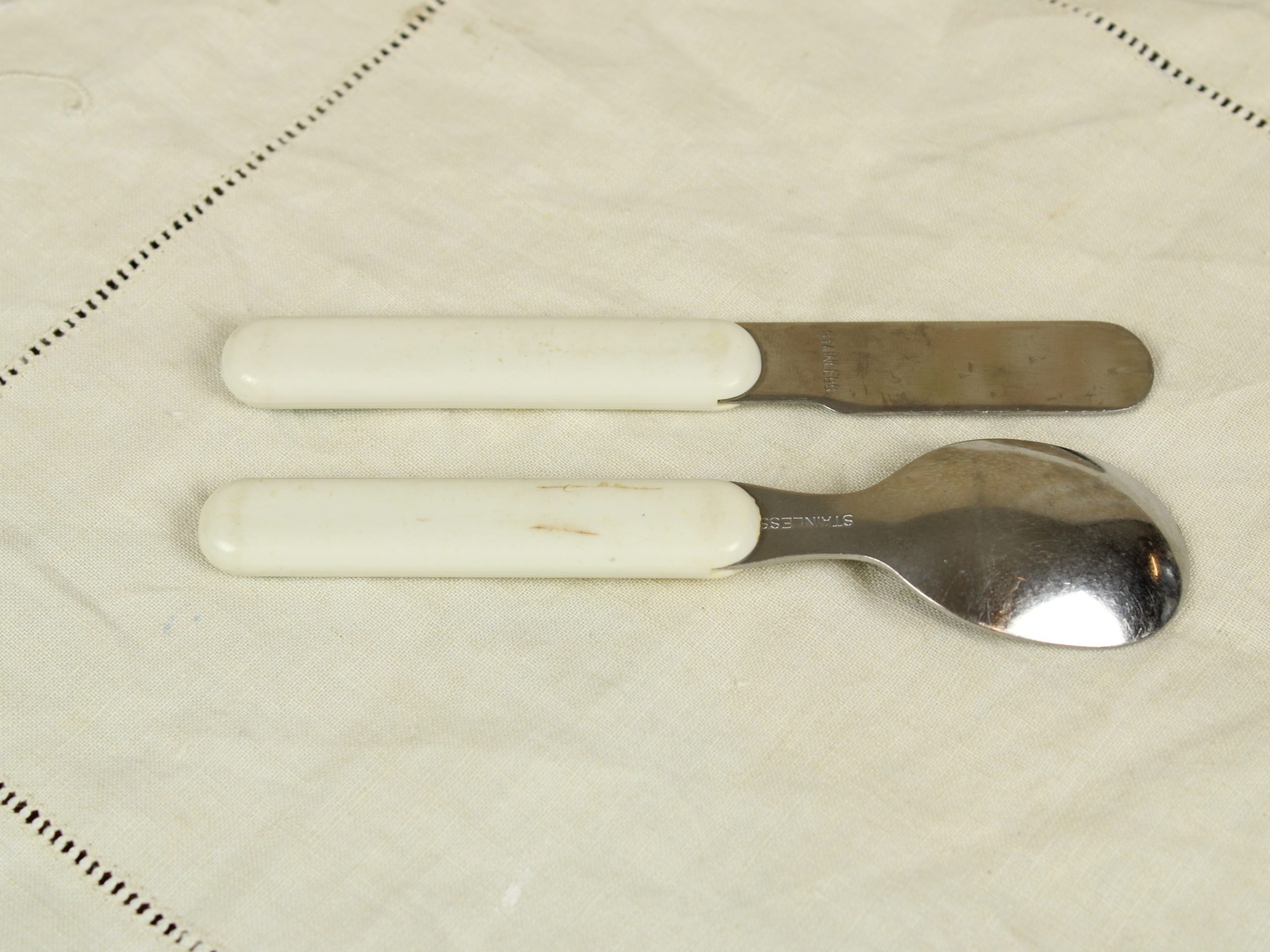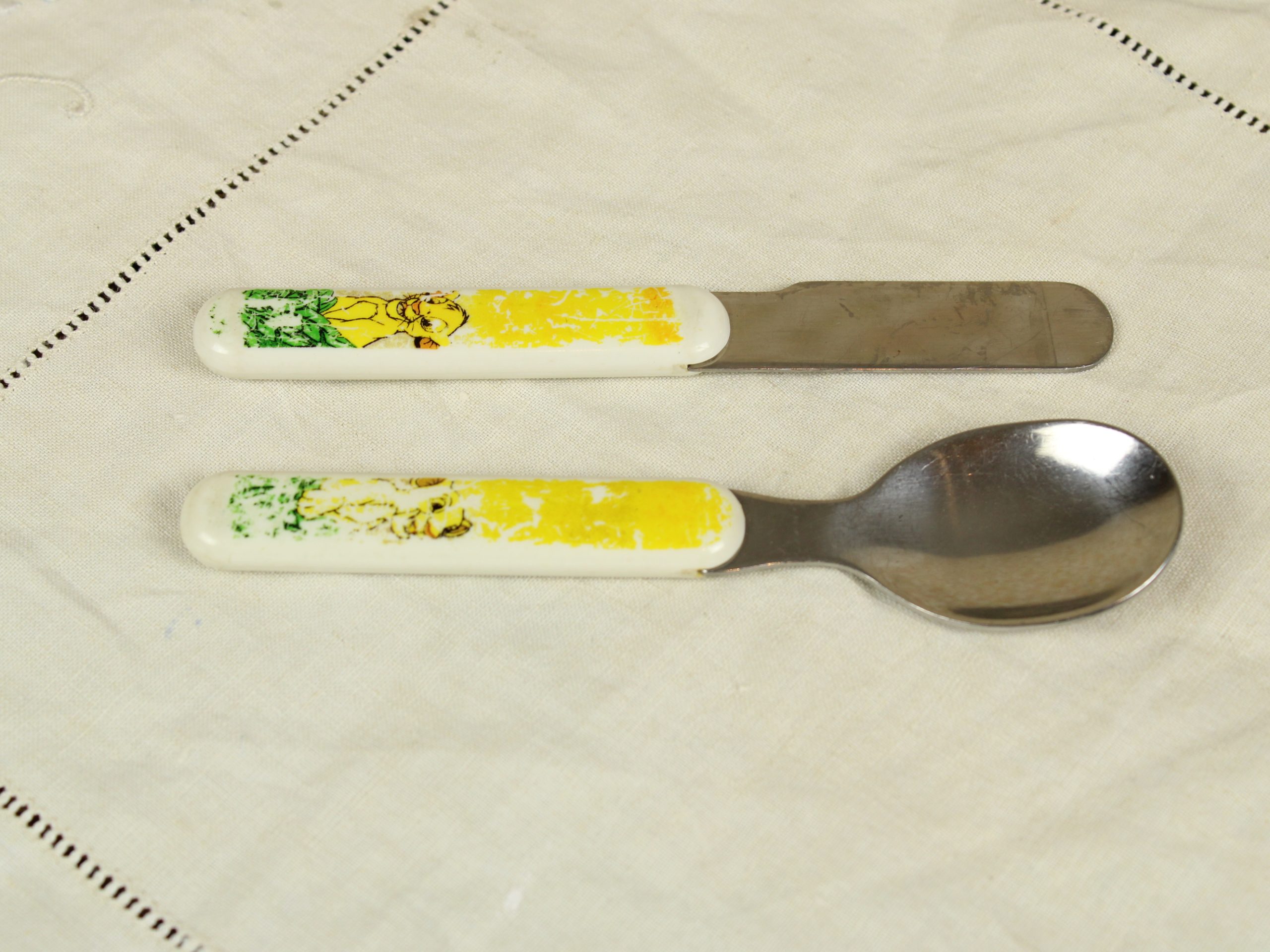 ◆商品 子供用中古食器セット 平皿2枚 スプーン1本、ナイフ1本