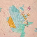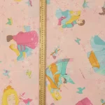 ピンク地にオーロラ姫と王子、三人の妖精、森の動物たちのいるファンシーな絵柄。