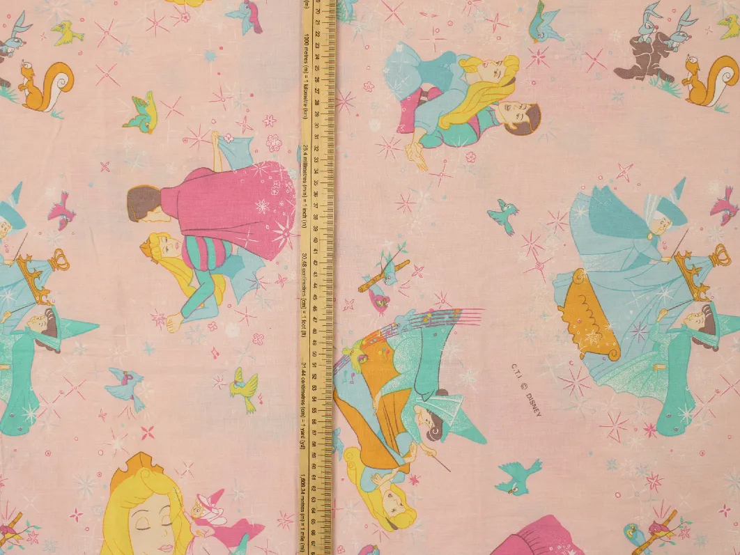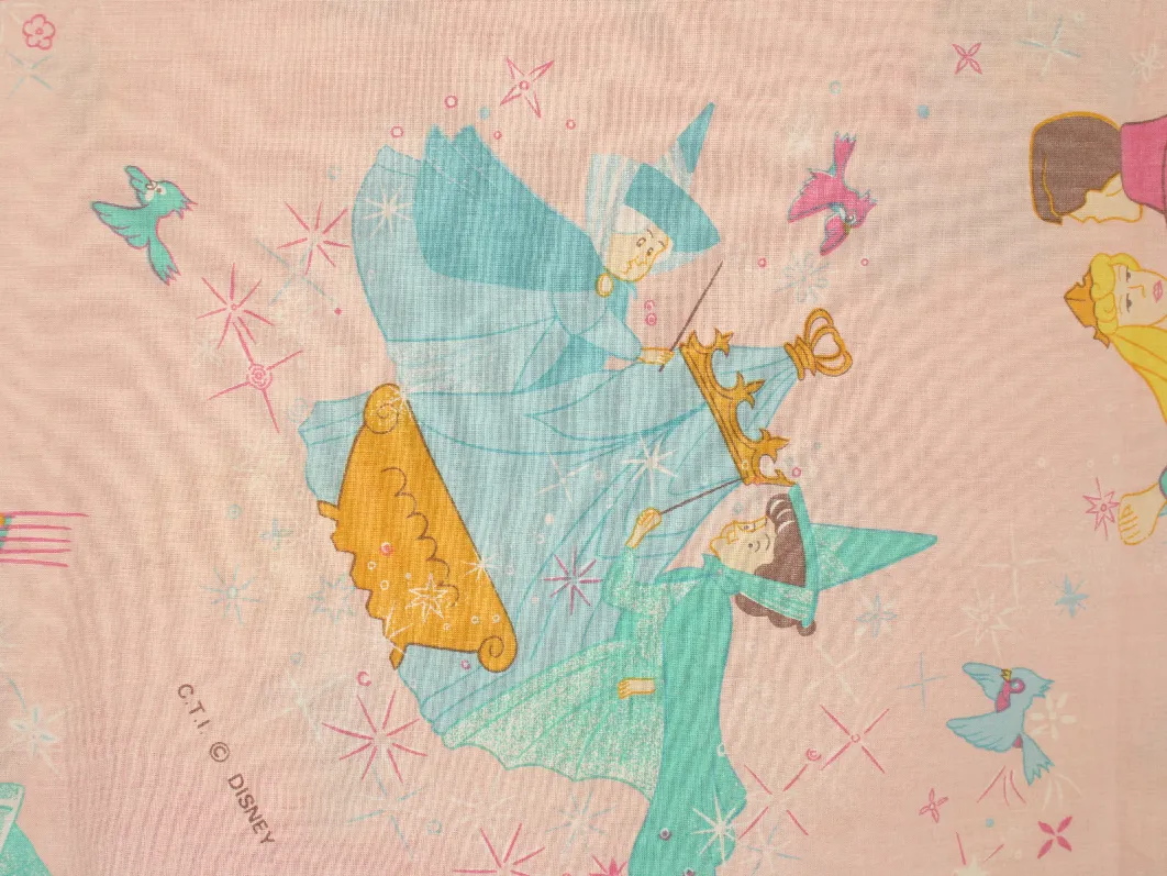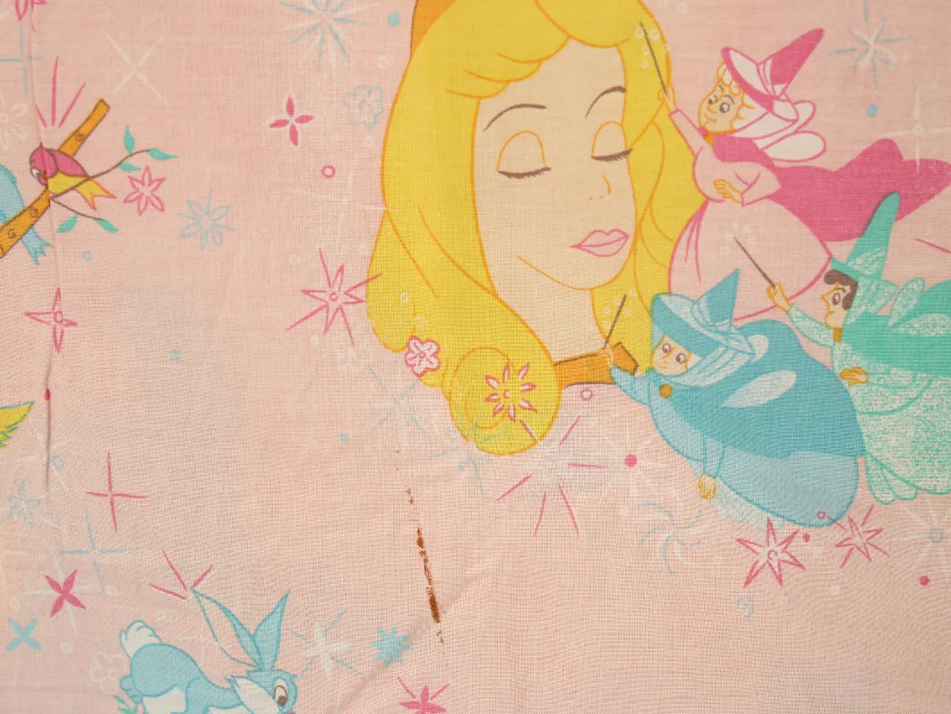 ディズニー、眠れる森の美女、キャラクタービンテージシーツ。解体生地。