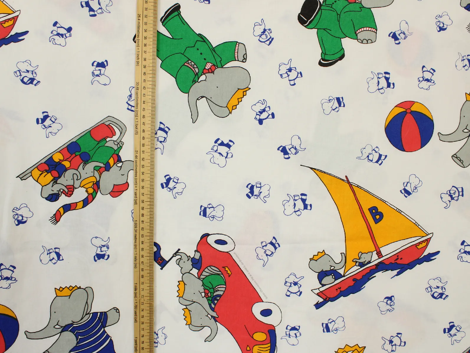 白地にカラフルな絵柄のババール。