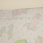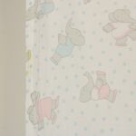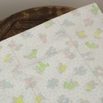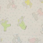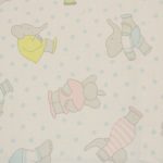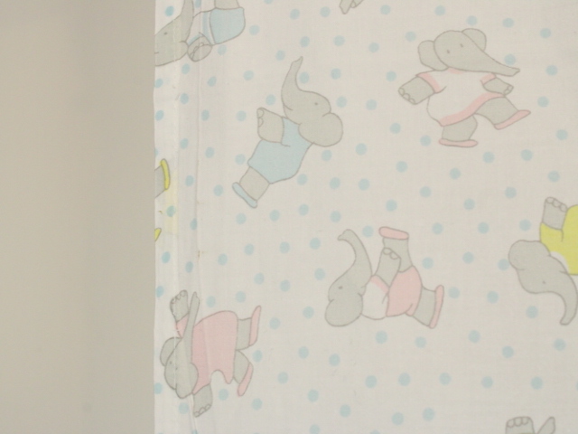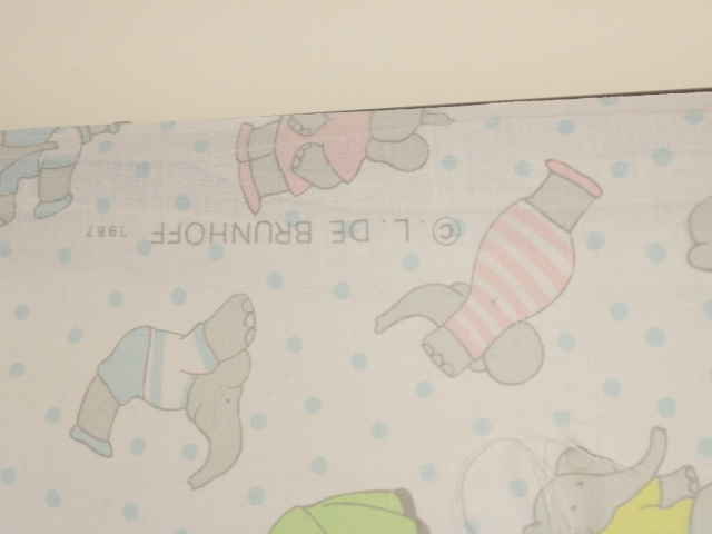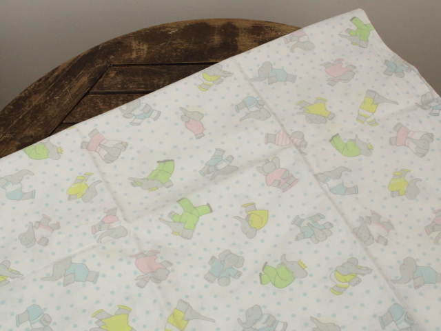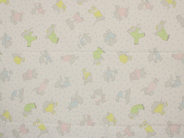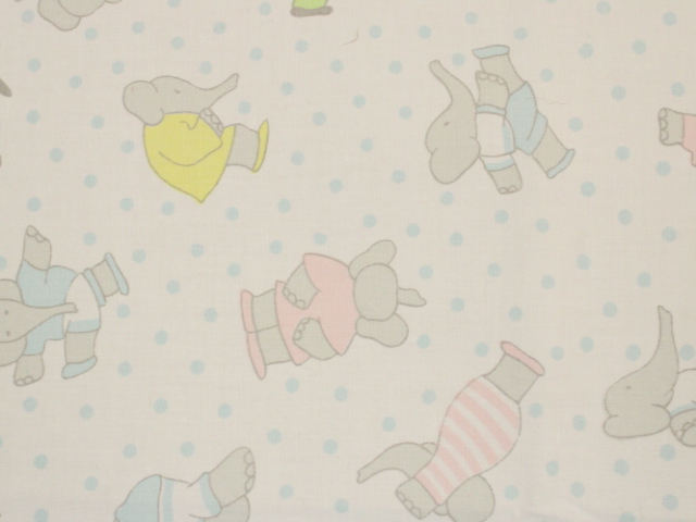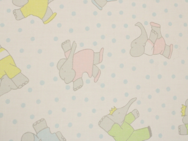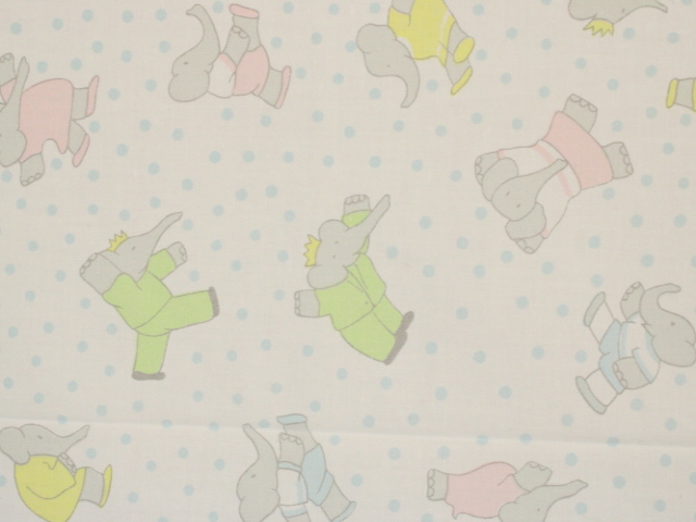 世界的に有名なフランスの絵本「ぞうのババール(Babar)」、水玉模様にパステルカラーが可愛い、ベビーサイズのフラットシーツです。