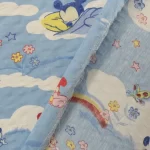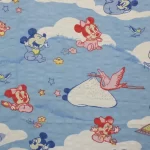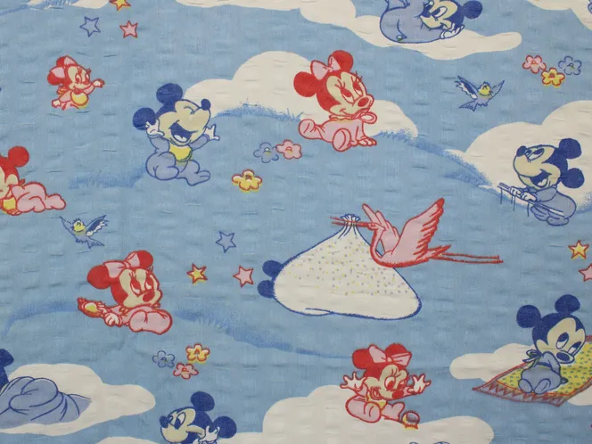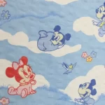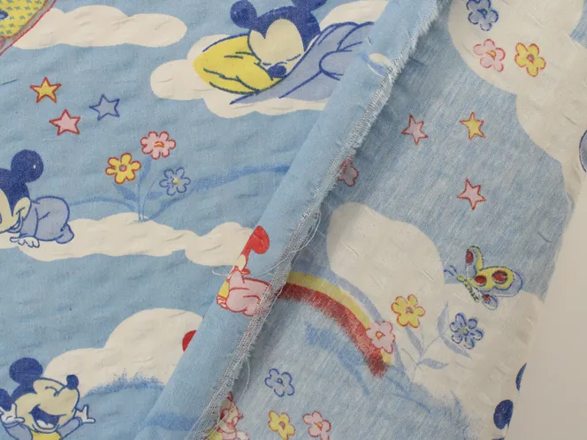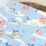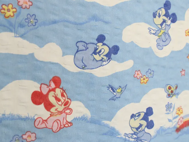 青空に雲の背景。ベビーミッキーミニーのシーツ解体生地です。