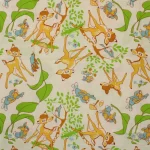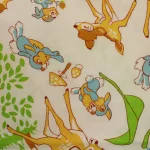緑の葉っぱが鮮やかなオレンジ色のバンビ。中古シーツの解体生地です。