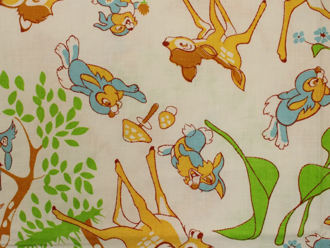 WALT DISNEY PRODUCTIONS、、バンビ、キャラクタービンテージシーツ。解体生地。