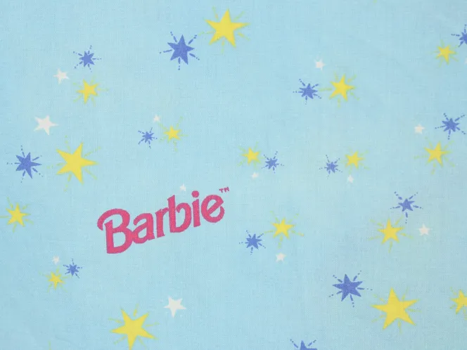 水色地にレトロポップな星柄が可愛い、バービーのフラットシーツです。