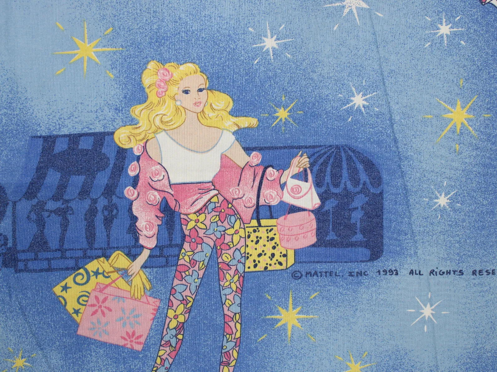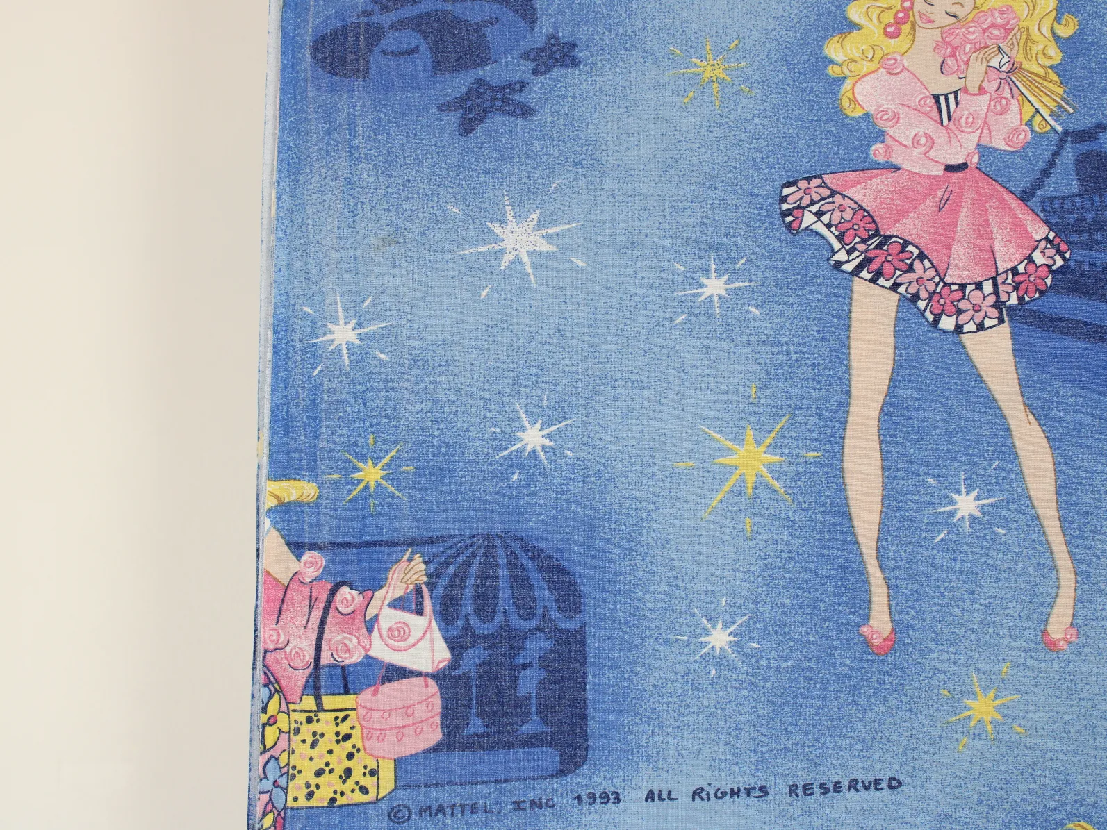 バービー(Barbie)、キャラクタービンテージシーツ。解体生地。