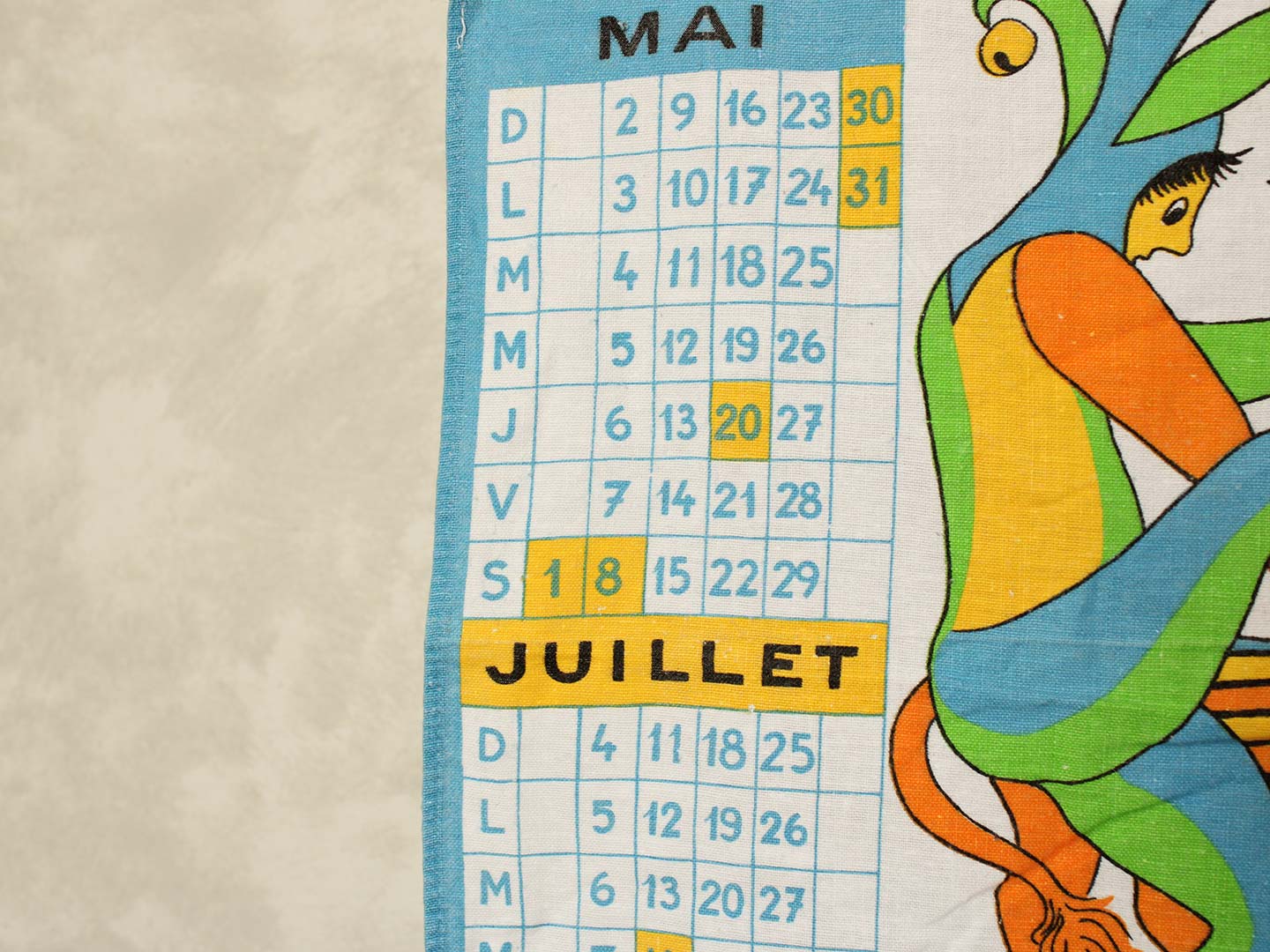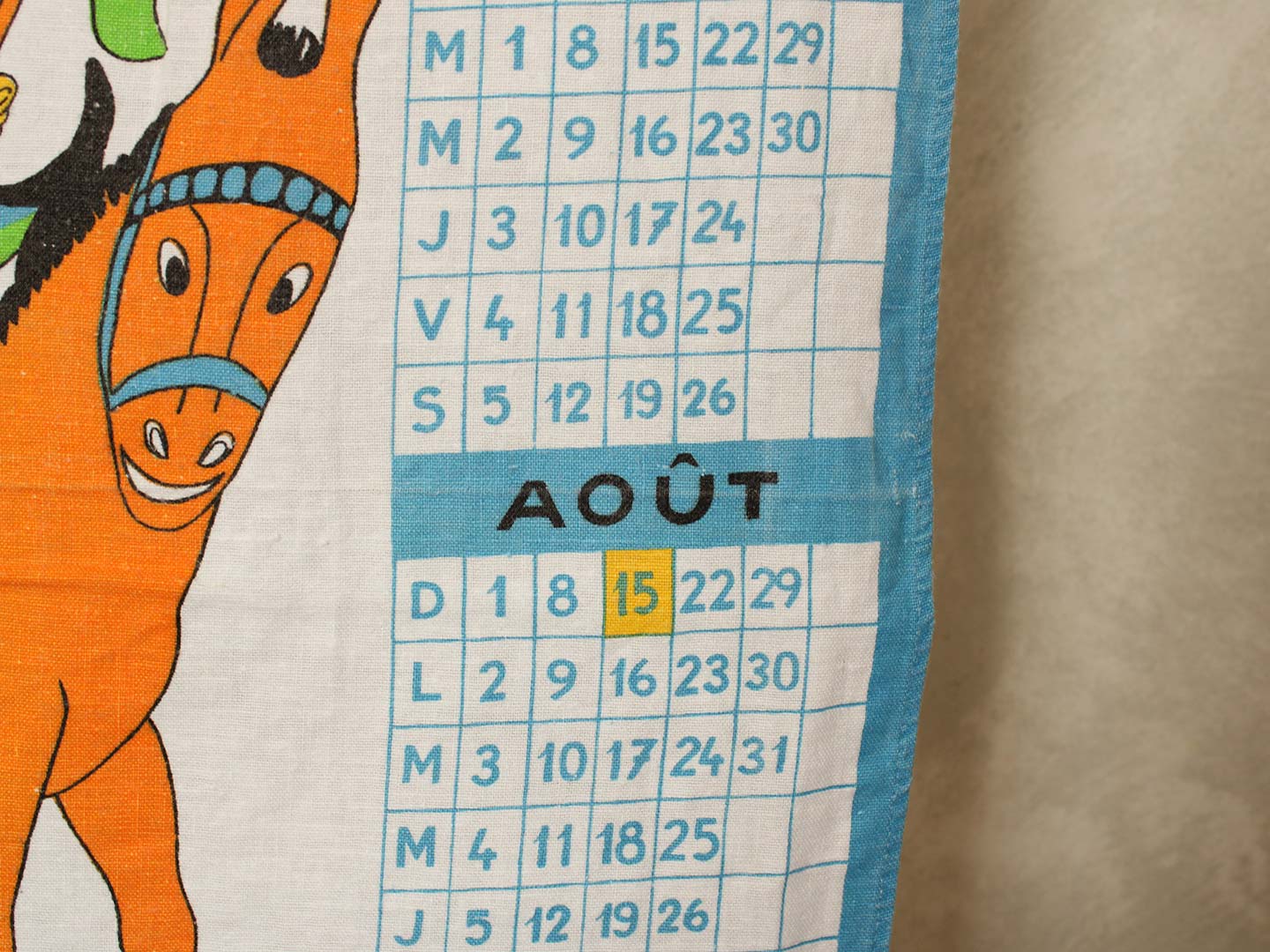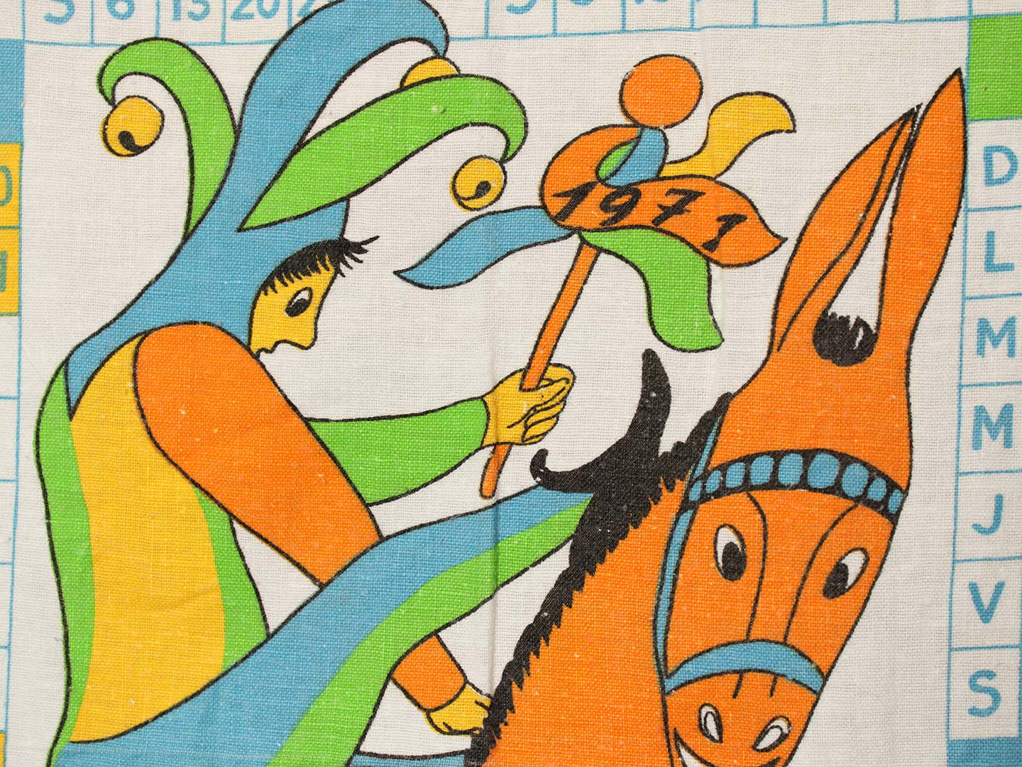 1971年のカレンダー柄キッチンクロス。しっかりとしたコットン製です。