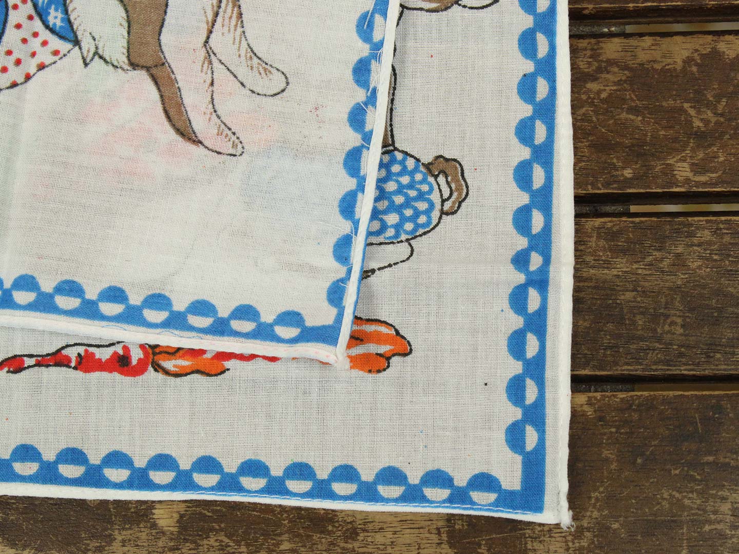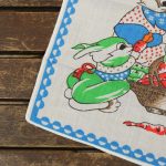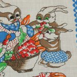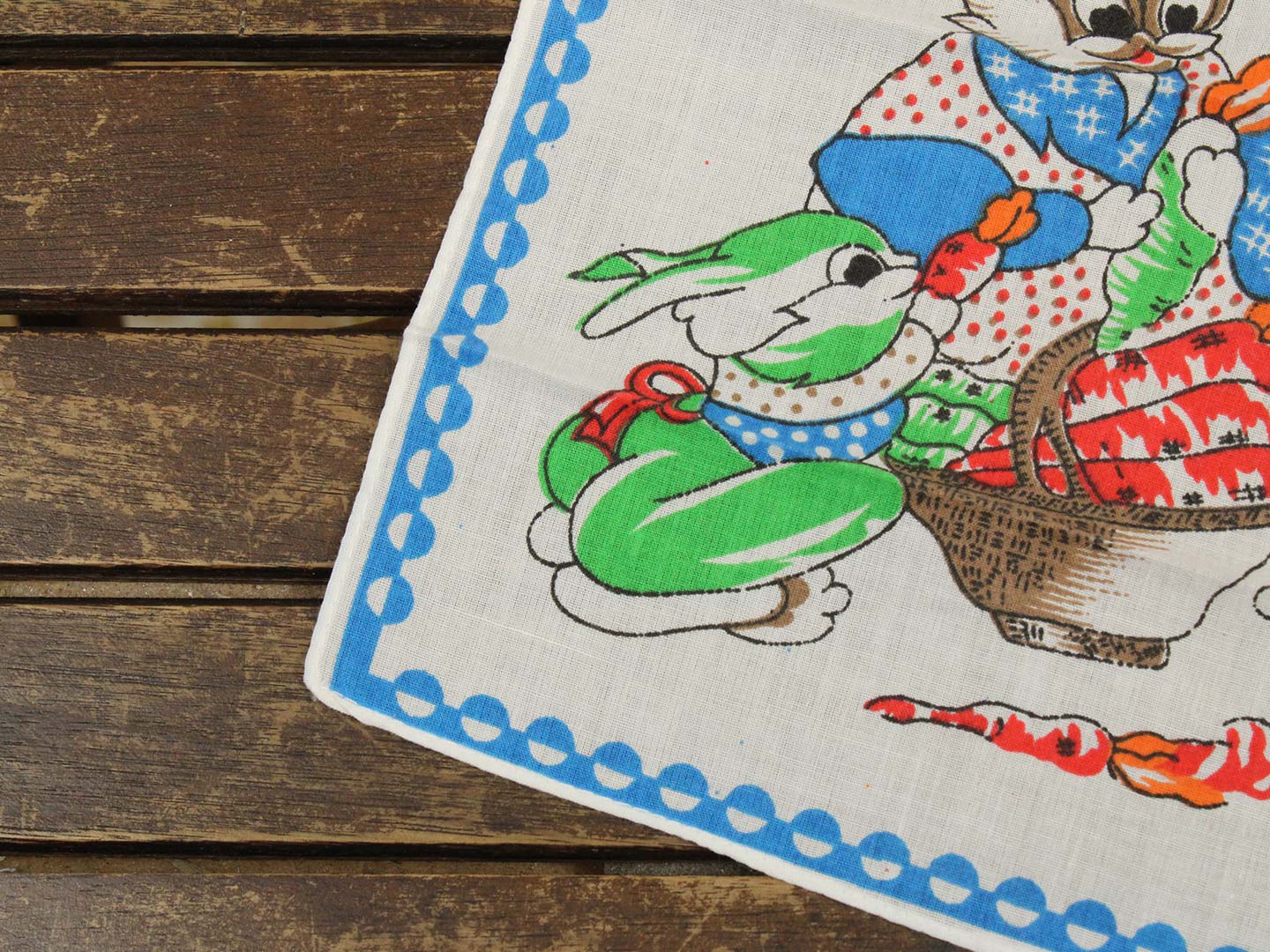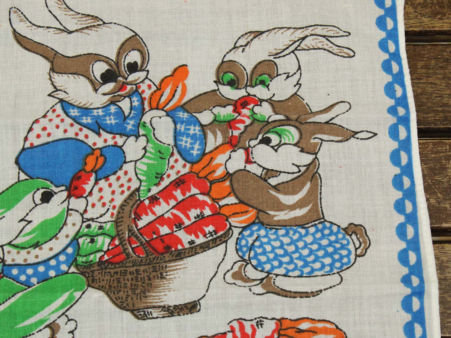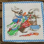 にんじんを食べているうさぎたちのハンカチ。