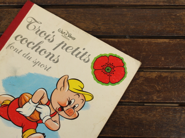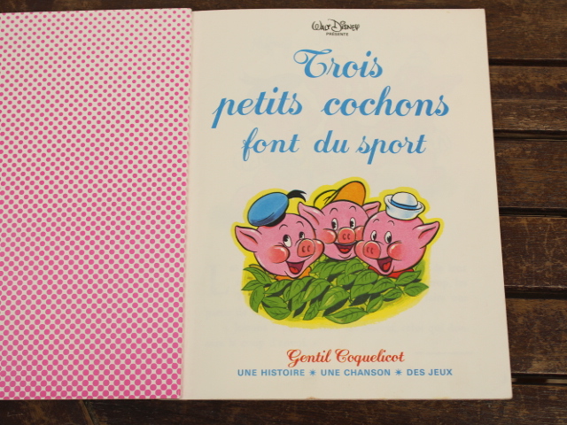 Walt Disney Productions 、絵本「Trois petits cochins font du sport」。フランス語のヴィンテージ絵本です。
