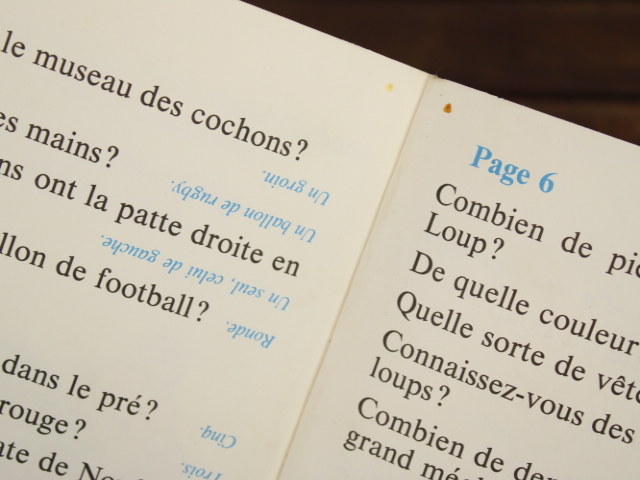 三匹の子ぶたがラグビーボールで遊んでいると…。可愛らしい絵柄を楽しんだり、フランス語学習にもおすすめです。