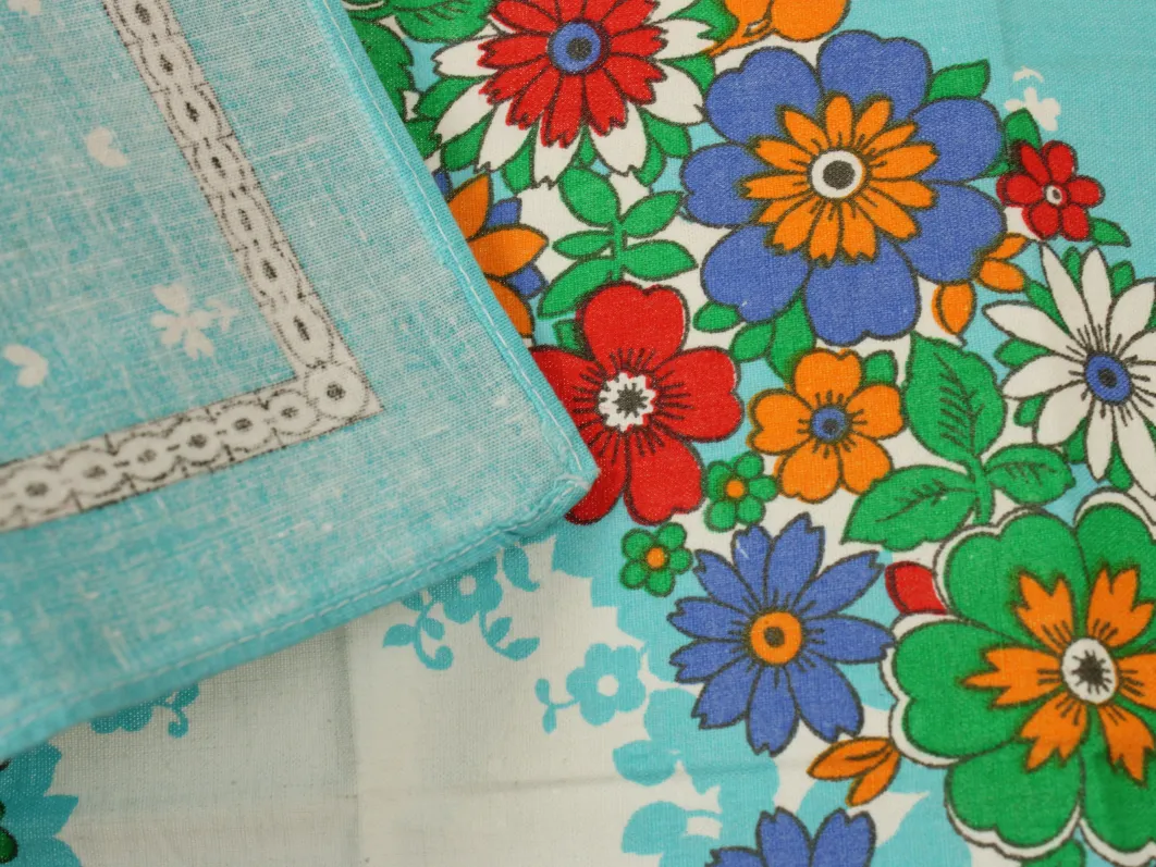 明るい色合いのレトロな花柄ナフキン。