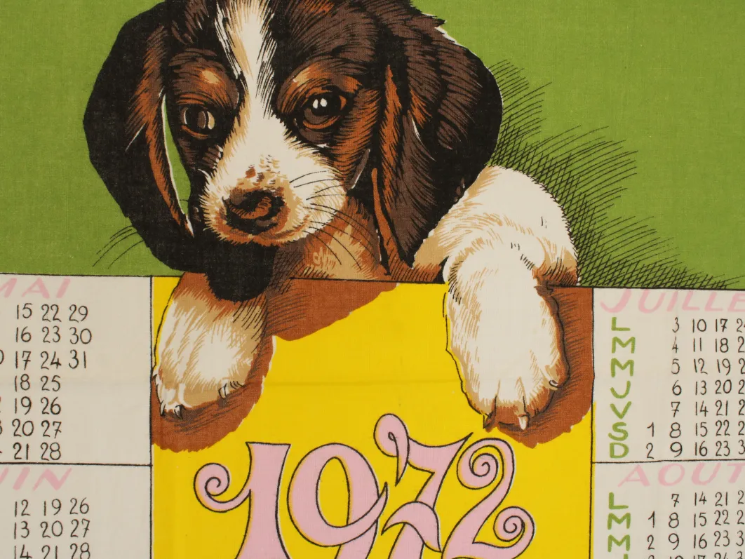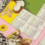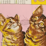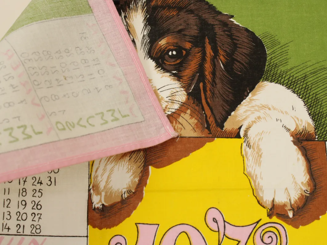 1972 カレンダー柄トーション 子猫と子犬 ピンク