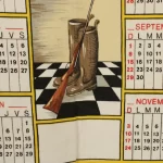 1983 カレンダー柄トーション 2匹の犬