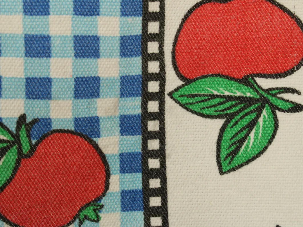 りんごとギンガムチェック柄のキッチンクロスです。
