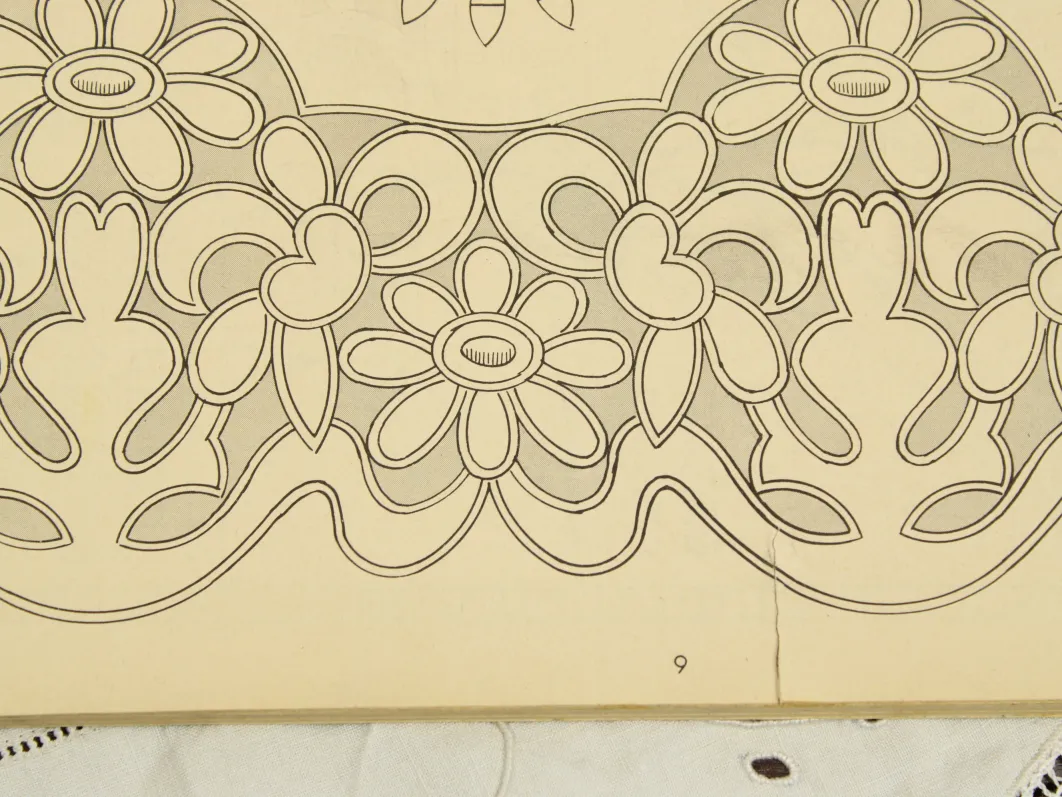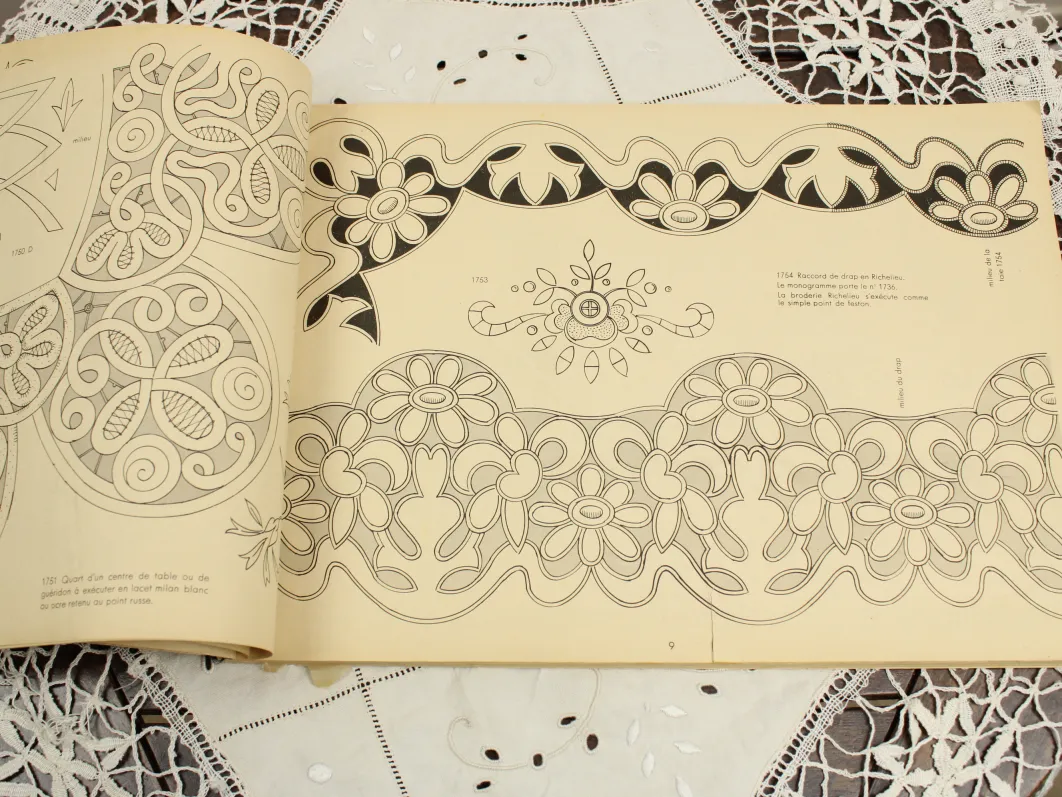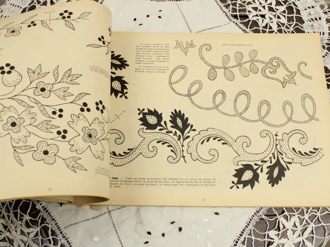 大きな見開きページに、実物大の刺繍図案がおさめられた冊子です。