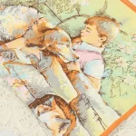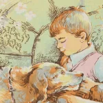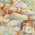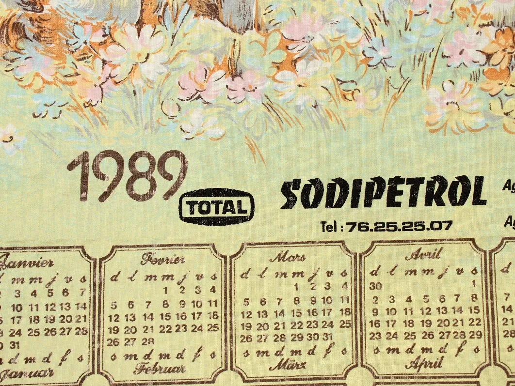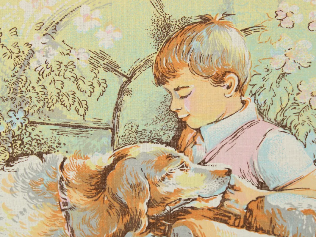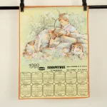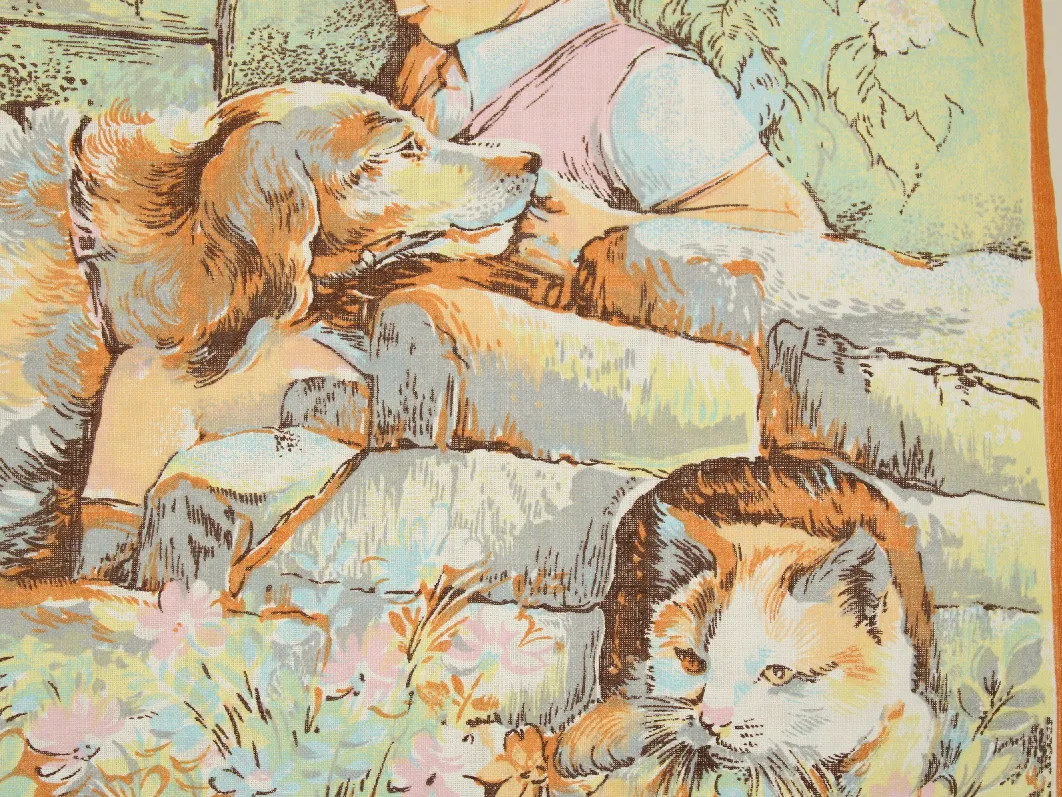 1989 カレンダー柄トーション 少年 犬 猫