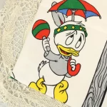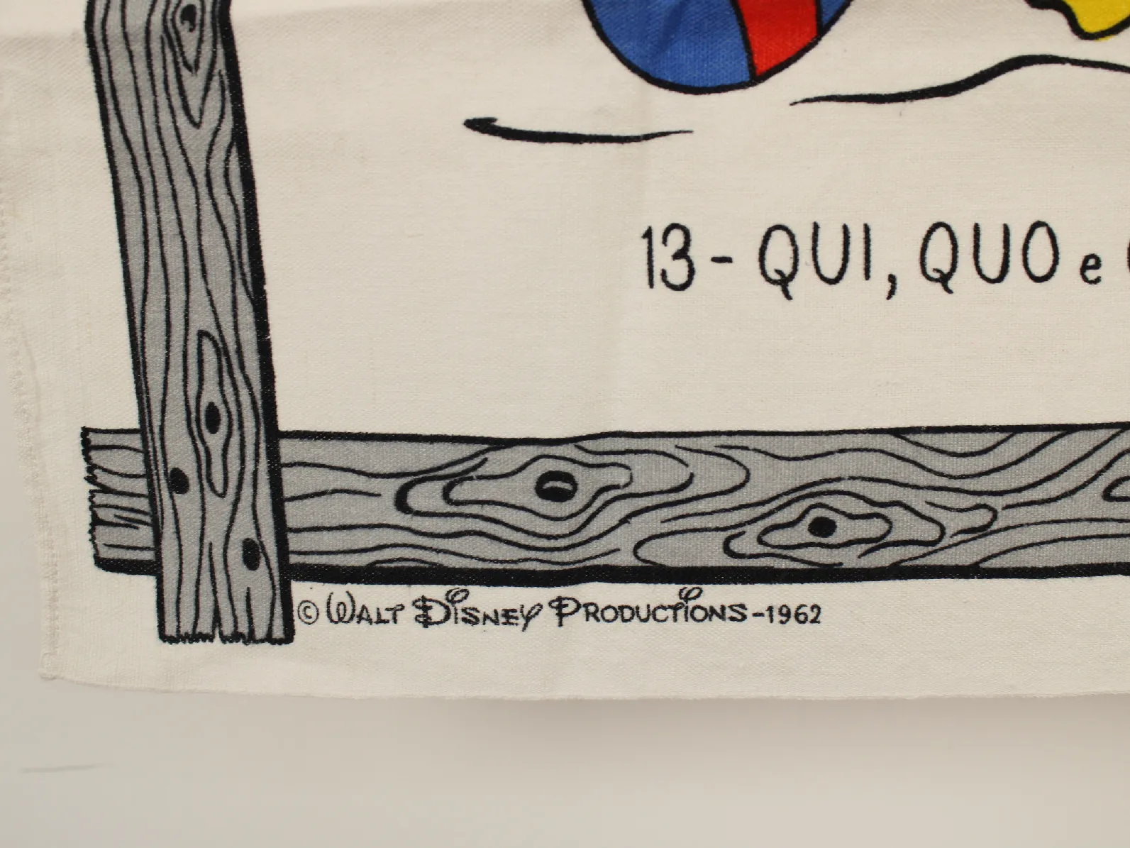 WALT DISNEY PRODUCTIONS、 ヒューイ、デューイ、ルーイのコットンリネン製キッチンクロスです。