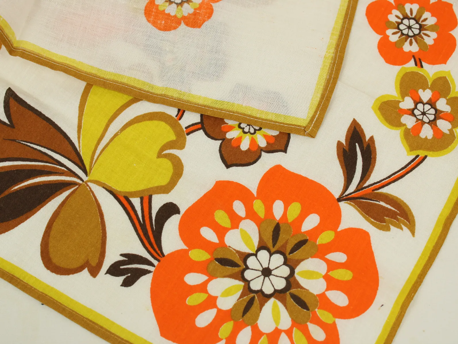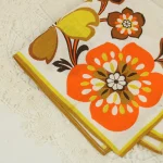 暖かい色合いのレトロな花柄ナフキン。